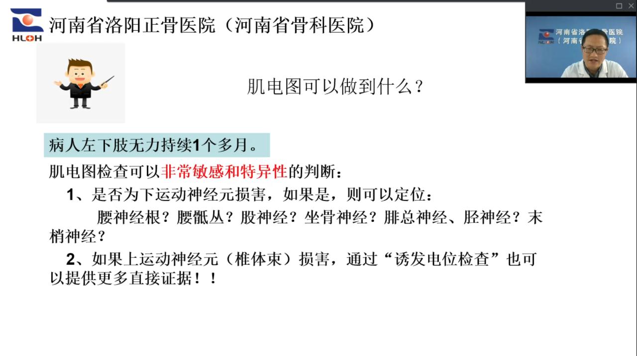 5月18日下午四点,正骨讲堂第158期钉钉线上直播开讲。本次讲堂特邀请我院功能检查中心袁虎副主任医师为大家分享《“肌电图”在临床工作中的应用》。