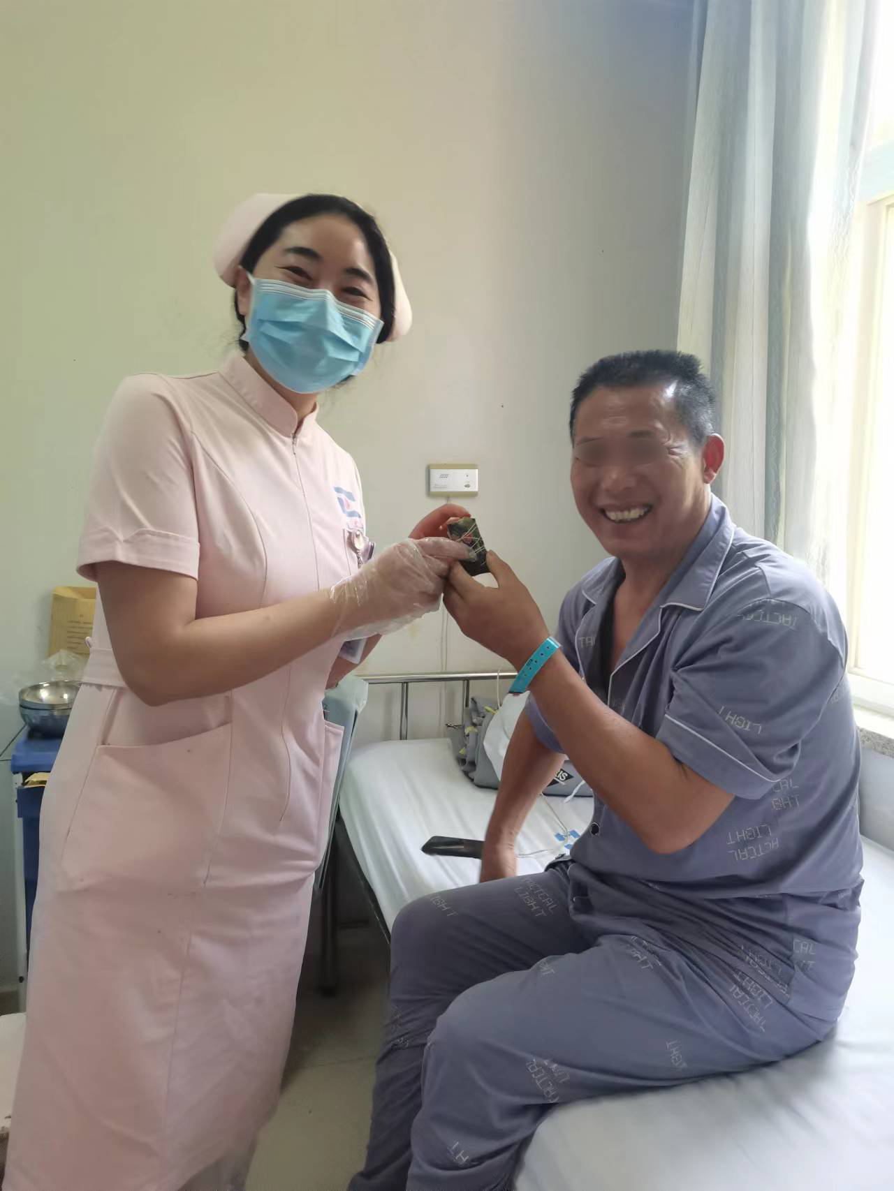 受工会主席吴晓龙同志委托,党办张韶国主任到现场慰问患者和职工,并转达吴晓龙同志对大家的祝福,祝患者和全体职工端午安康、诸事顺遂。