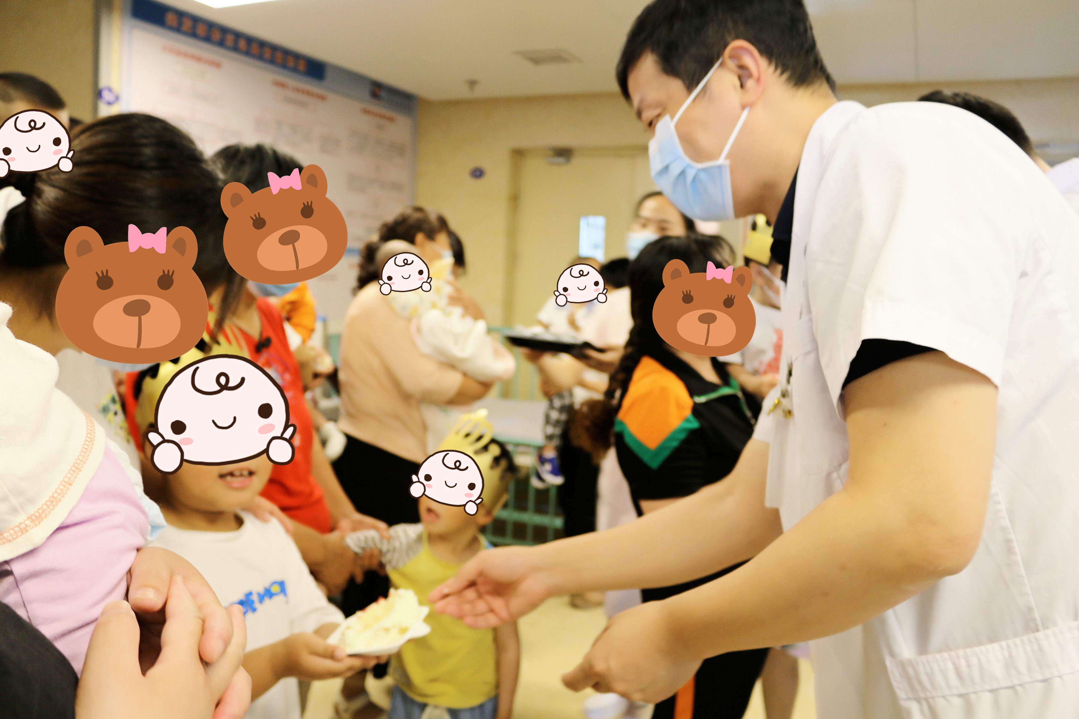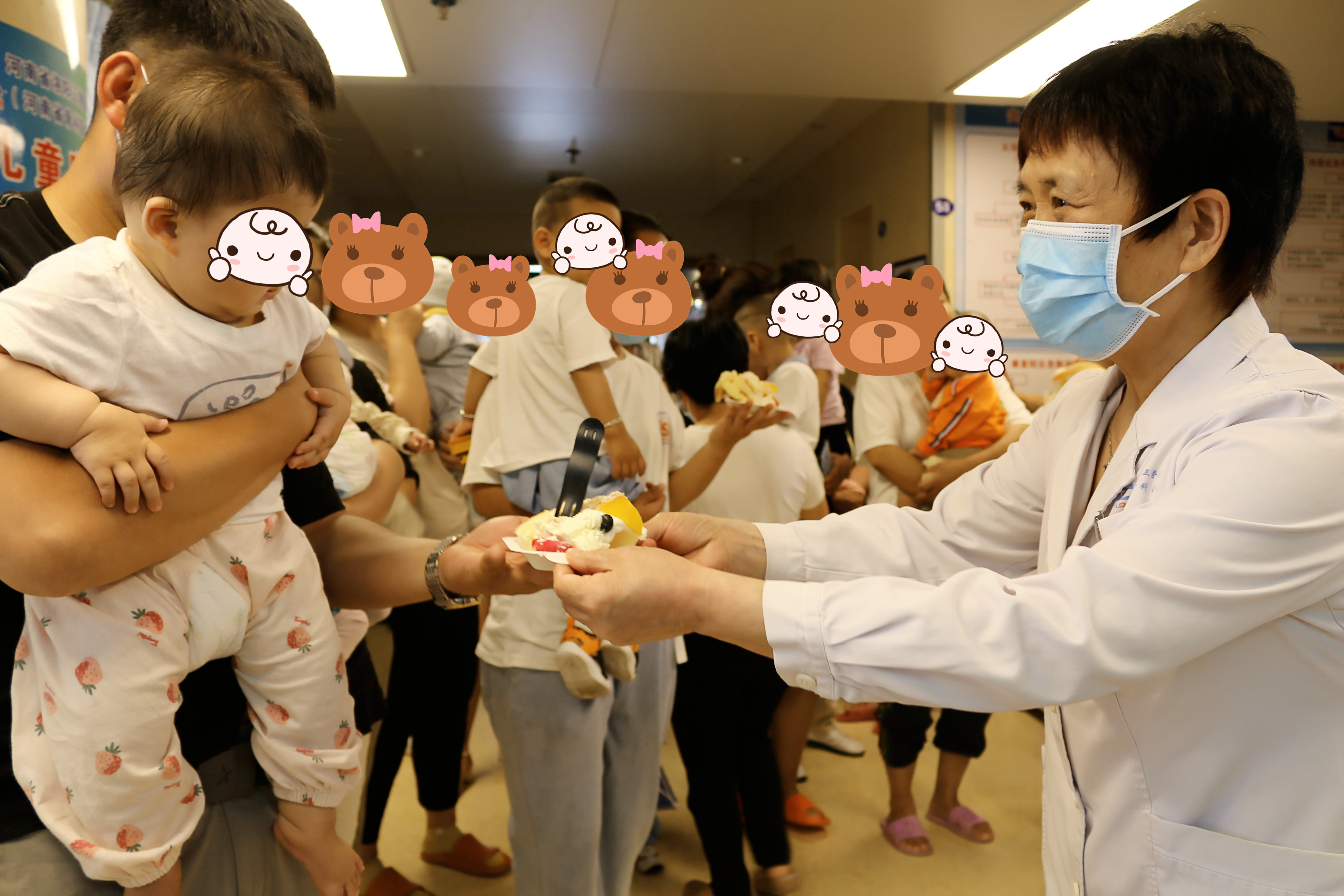 活动最后,康复院区管委会主任杜志谦,副主任张志杰、杨洸,儿童康复科主任万静和儿童康复科医护人员一同为患儿切蛋糕,并将蛋糕送到每一位患儿手中,愿他们在这份甜蜜中茁壮成长,一生幸福健康。