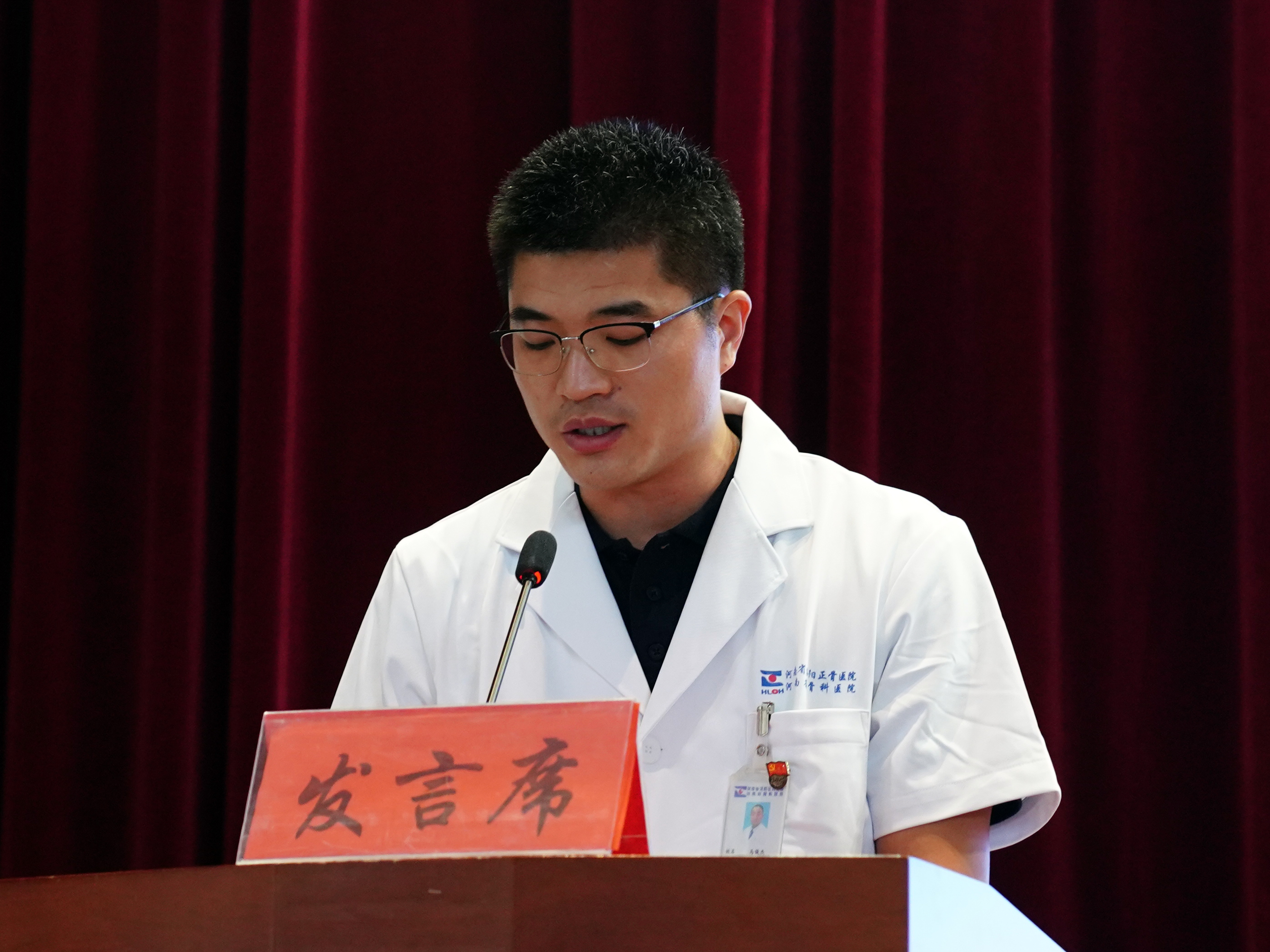 颈肩腰腿痛(推拿)诊疗中心副主任宋永伟带领所有医、药、技、治疗师庄严宣读《中国医师宣言》,一起重温医者初心,坚定守护人民健康的决心与担当。