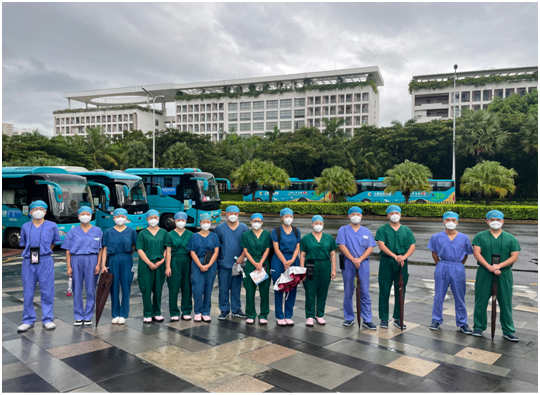 8月6日晚上7点,刚刚结束当天的手术,一打开微信便看到:“紧急通知,急需医护人员支援海南,随时出发!”随即,我的脑海里便浮现出2020年我的老师支援武汉前说的话:“去武汉肯定纠结啊,但身为医务人员,我们不能后退!”当时,我还是一名医学生,每每与老师谈论起援鄂抗疫,我的内心都充满敬佩与崇拜!此刻,我也可以以一名医生的身份,投入到抗疫斗争一线中去了!我果断报了名,1小时的准备时间,匆忙收拾了些随身物品,便与19位战友并肩前往郑州院区。出发前收到了科室主任李红军的关心,嘉宁哥也专门跑来给我送行,我内心十分感动,眼眶不禁湿润了。