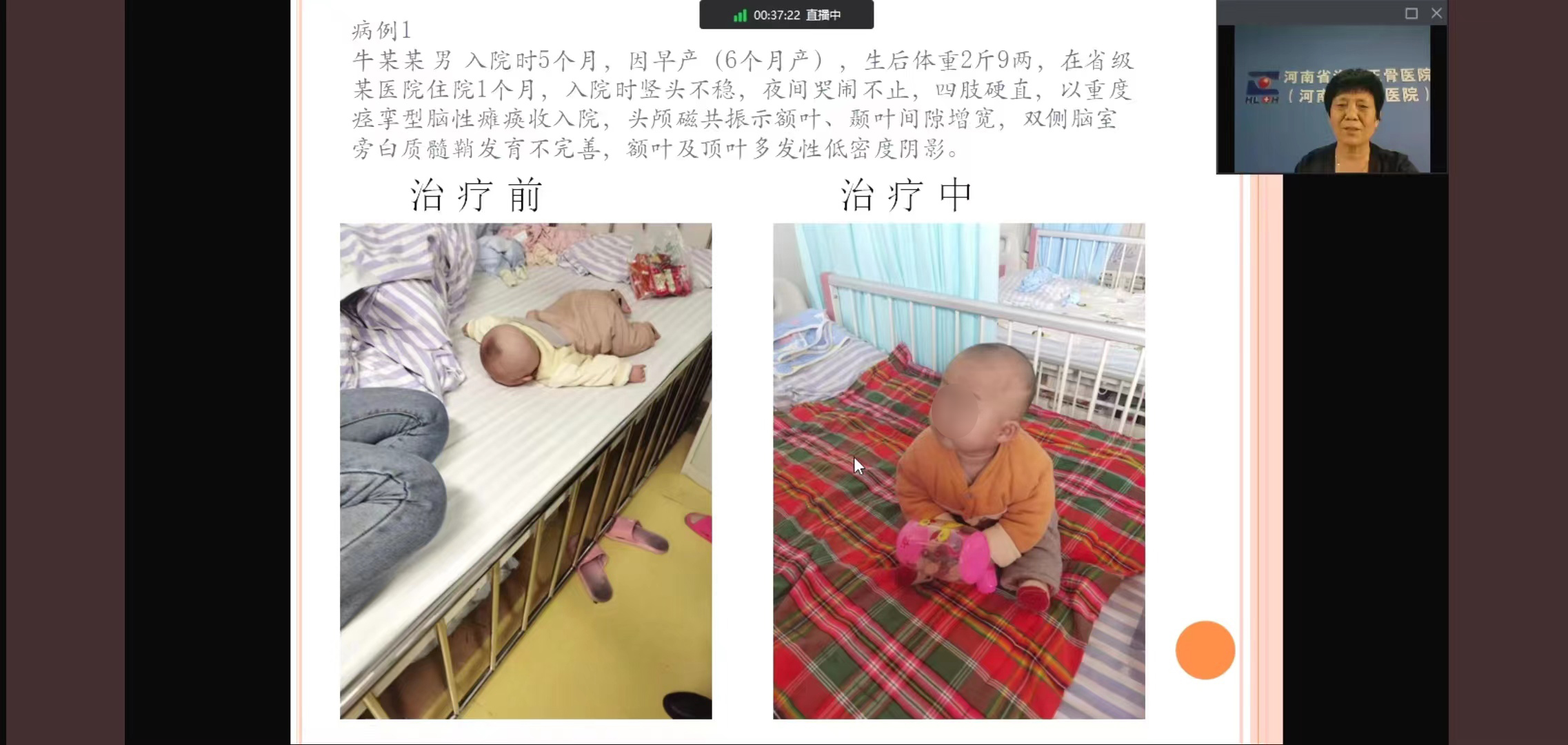 万静主任指出:脑瘫的“超早期”治疗为0-3个月,早期治疗为0-6个月。其中0-3个月是康复治疗的“黄金阶段”,康复治疗越早效果越好,因此对于脑瘫患者,“早发现、早诊断、早治疗”显得异常重要。万静主任结合自己亲身实践,通过一系列典型病例向大家展示了中西结合治疗脑瘫的方法及治疗效果。