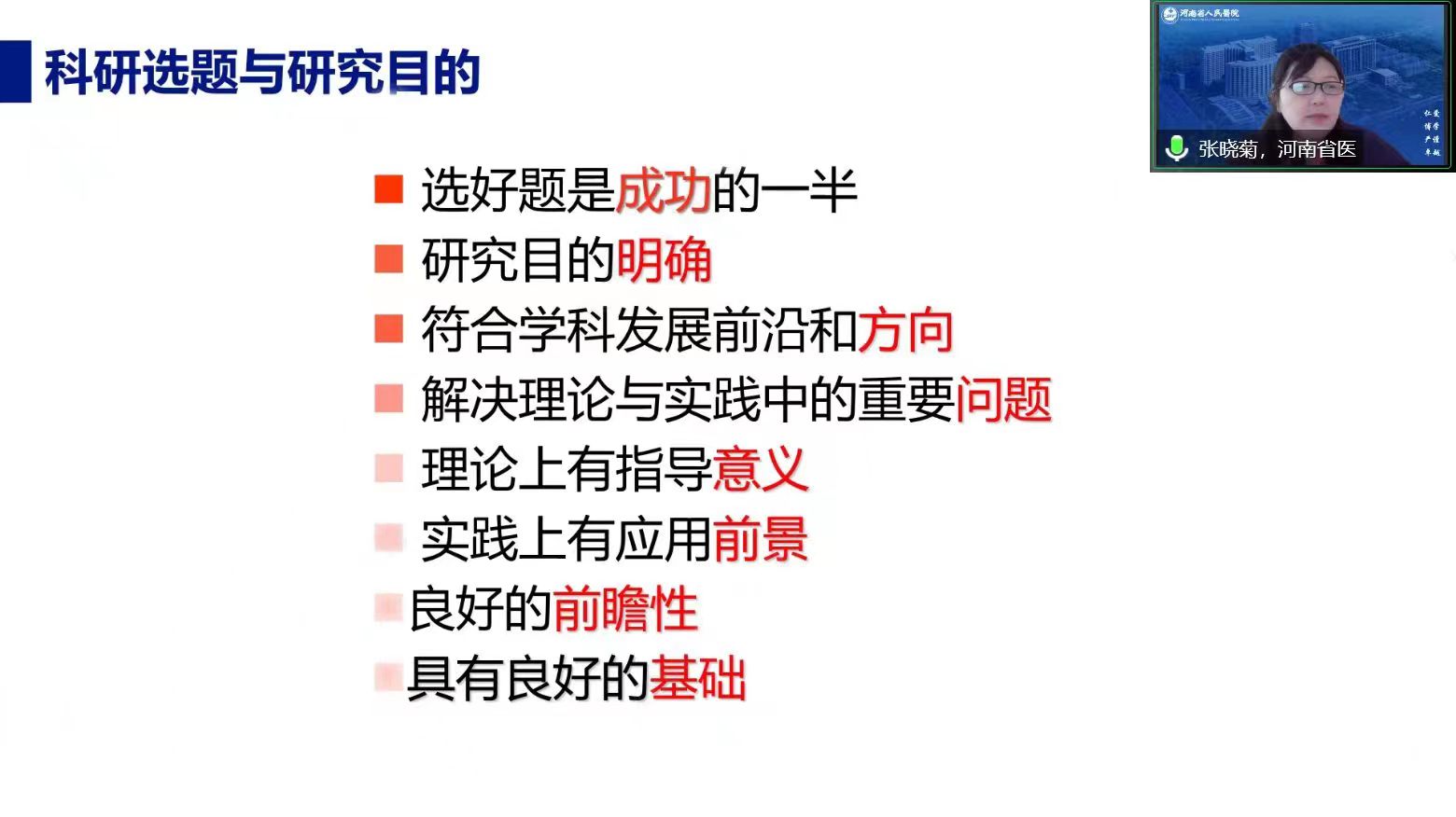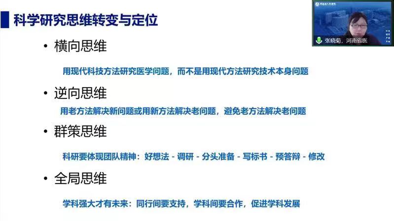 12月9日下午15:00,第五期“国家自然科学基金培训讲座”成功举办,本期为我院与河南省人民医院联合举办,邀请到河南省人民医院张晓菊教授进行讲座,题目为《国家自然科学基金申报及注意的问题》。