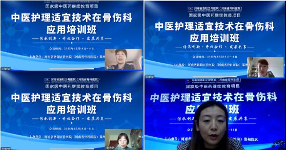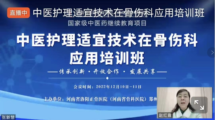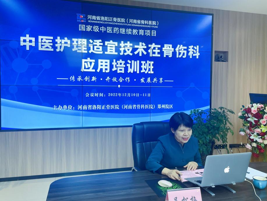 为了发扬中医药文化,推动中医特色护理技术创新发展,提升中医护理服务质量,促进中医护理人才培养和学科发展,2022年12月10日-11日,我院郑州院区护理部举办国家级中医药继续教育项目“中医护理适宜技术在骨伤科应用培训班”,邀请了国内知名护理专家开展线上专题讲座及实操指导。省内外近3000名护理人员线上观看,加强了交流与合作,提升了我院的学术影响力。