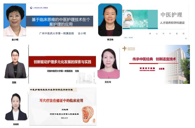 培训班线上课程由广州中医药大学第一附属医院护理部全小明主任、佛山市中医院护理部陈玉梅主任、河南中医药大学第一附属医院护理部刘姝主任、河南省中医药护理部王红霞主任、河南中医药大学第二附属医院教研室刘晓辉主任,围绕基于临床思维的中医护理技术在个案护理的应用、中医护理人才培养和学科建设、创新驱动护理多远化发展的探索与实践等主题进行精彩授课。为中医护理适宜技术的创新发展及推广应用提供了新的思路,达到了深层次挖掘、传承、创新、推广、应用中医护理专家的学术经验,培养中医药护理人才,强化中医护理学科的建设,提高中医护理服务能力和水平的目的。