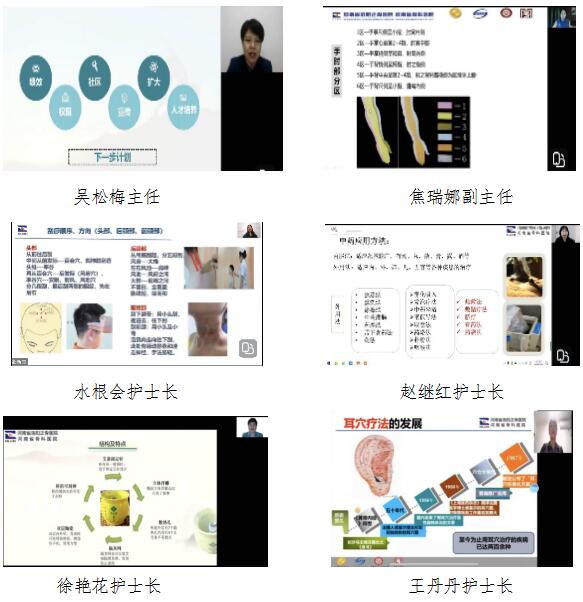 我院一级督导员张淑卿,洛阳东花坛管委会委员李海婷,护理部主任邢林波,郑州院区护理部副主任王茜分别主持了线上会议。
