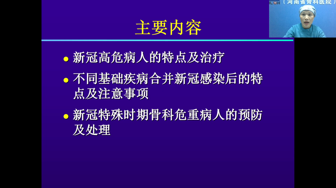王主任指出,对于骨科高危病人,要从患者合并的基础疾病以及各脏器的功能状态、新冠感染的时期、新冠感染的严重程度、手术或者创伤本身的风险以及并发症等多方面综合评估,并且要做到充分有效的病情沟通(住院前、住院后、病情变化时)、新冠的相关治疗及病情监测、基础疾病的一个积极处理、创伤或者手术的风险以及预防措施。
