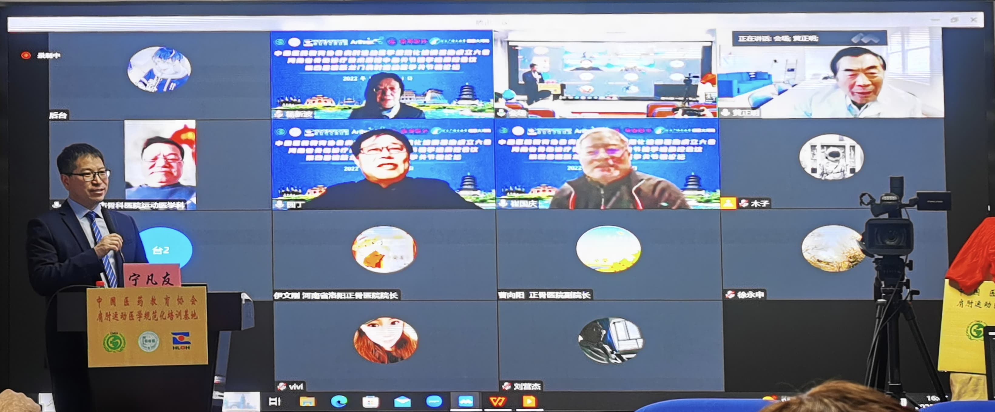 12月30日下午首先举行中国医药教育协会肩肘运动医学规范化培训基地洛阳基地成立大会,中国医药教育协会黄正明会长、贾万年副会长、杨新波副会长及崔国庆主任委员、裴殷秘书等线上参会,我院院长伊文刚、副院长曹向阳、洛阳东花坛院区管委会委员司春阳、医务部主任商淑娟、肩肘外科诊疗中心牛素玲主任、运动医学中心谭宏略主任、拟任基地主任委员的肩肘外三科主任宁凡友及基地副主任委员、常委及委员通过线上、线下相结合的方式积极参与。