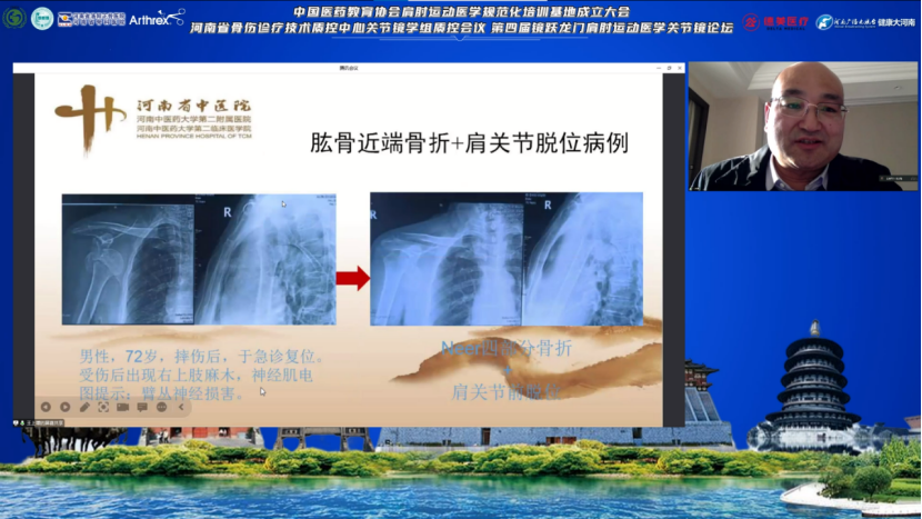 来自省内的各位专家也进行了精彩纷呈的授课,郑州市骨科医院刘宁教授分享了《沙滩椅位肩关节镜术后脑梗》的处理心得体会,郑州市颐和医院黄遂柱教授分享了《术前预测巨大不可修复肩袖撕裂》,河南省中医院王上增教授分享了《一例外科颈骨折合并肩关节脱位的治疗体会》,河南省人民医院赵甲军教授分享了《老年患者肩袖损伤合并骨折脱位的治疗陷阱》,郑州大学第一附属医院田科教授阐述了《肩关节镜下肱二头肌长头肌腱的处理——去留的选择》,郑州大学附属郑州中心医院刘德鼎教授分享了《伴有前方骨缺损的肩关节前脱位治疗》,洛阳市中心医院刘营杰教授讲述了《肩袖解剖和临床》。我院刘玉珂教授分享了《肩关节常见病变的MRI诊断》,张川教授阐述了《肩周炎(冻结肩)诊断、鉴别诊断和治疗》,宁凡友教授分享了《肩关节的物理查体》。