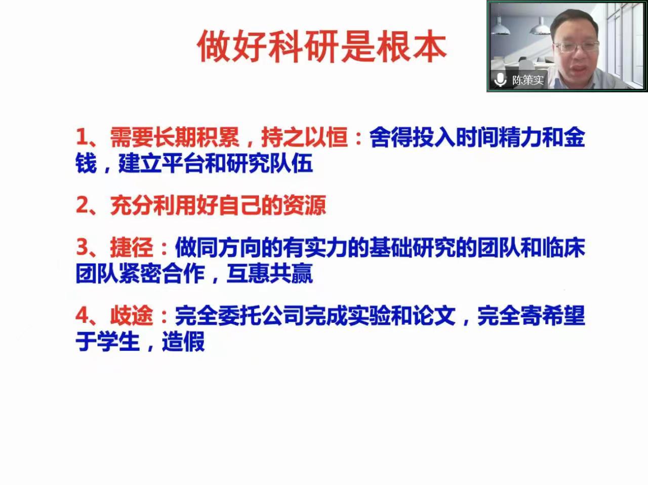 2023年1月11日下午16:00,第八期“国家自然科学基金培训讲座”成功举办,本期为我院与河南省人民医院联合举办,邀请到昆明医科大学陈策实教授进行讲座,题目为《从评委角度谈国自然基金写作技巧》。