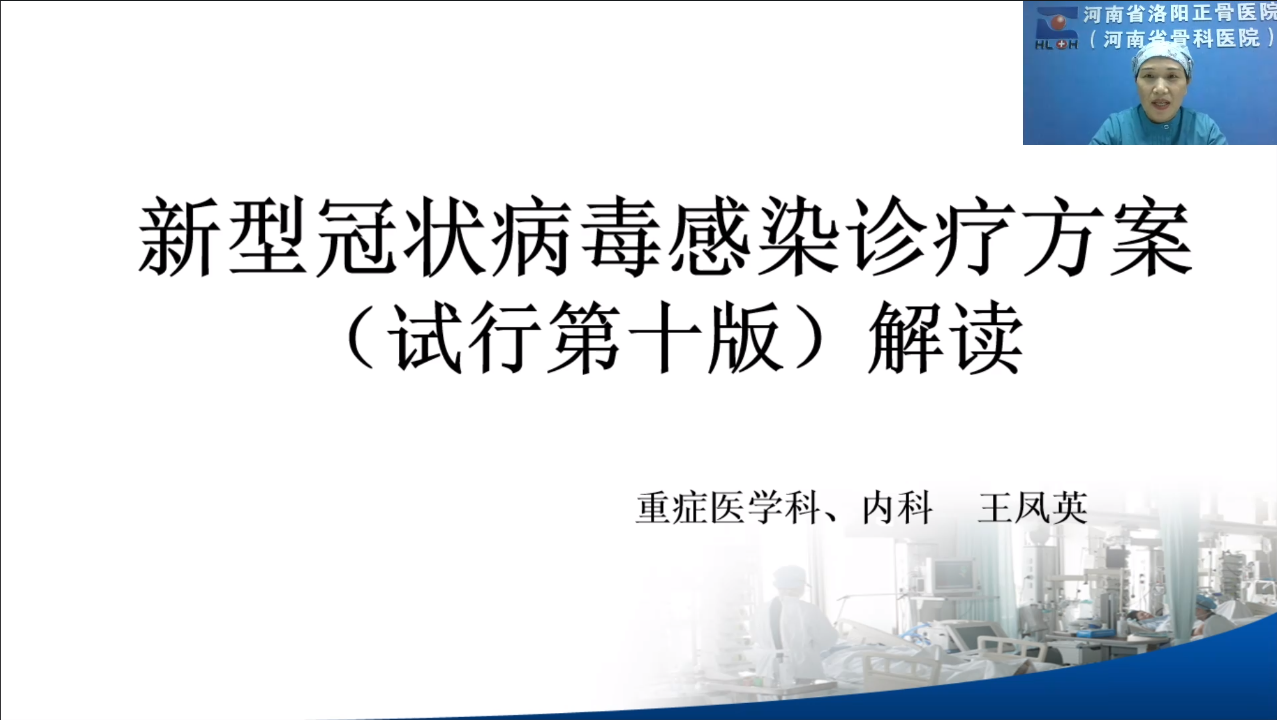 2023年1月12日,正骨讲堂第183期钉钉线上直播开讲。本期讲堂特邀请我院重症医学科主任王凤英为大家解读《新型冠状病毒感染诊疗方案(试行第十版)》的主要内容。