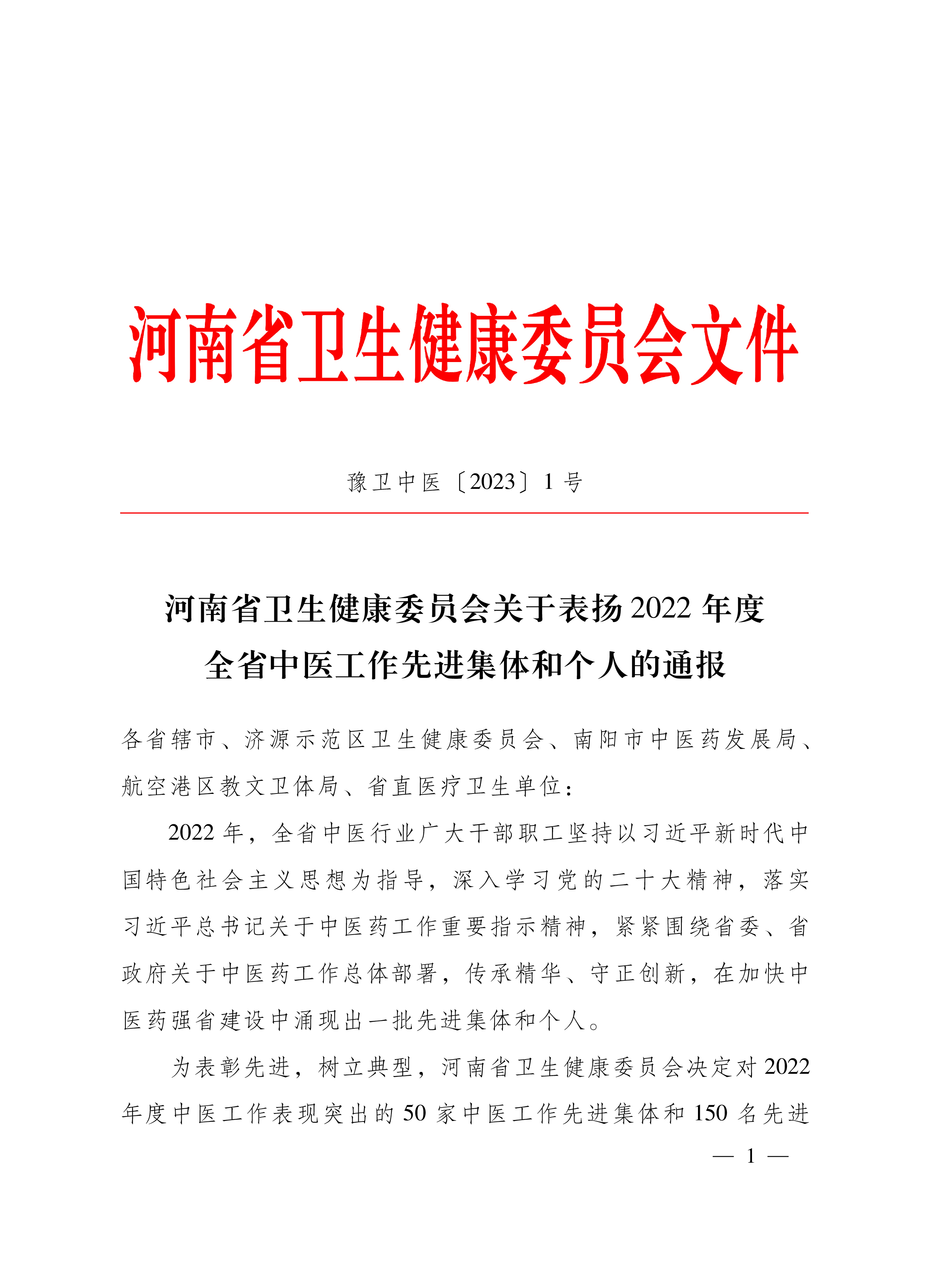周英杰、王智勇、阎晓霞、商淑娟、邢林波、孔赏、李麦朵荣获2022年度全省中医工作先进个人称号。