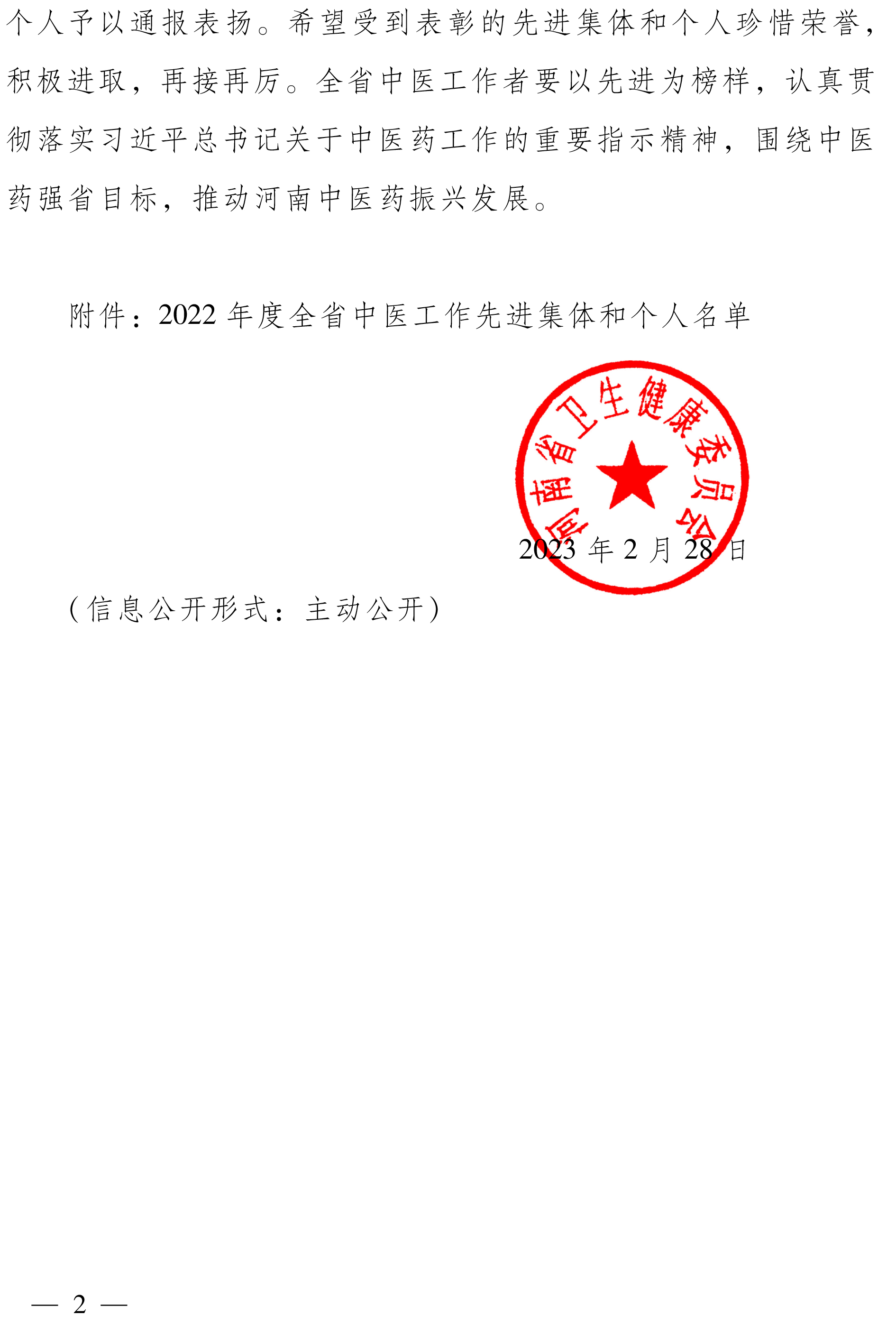 2022年,全省中医行业广大干部职工紧紧围绕省委、省政府关于中医药工作总体部署,传承精华、守正创新,在加快中医药强省建设中涌现出一批先进集体和个人。