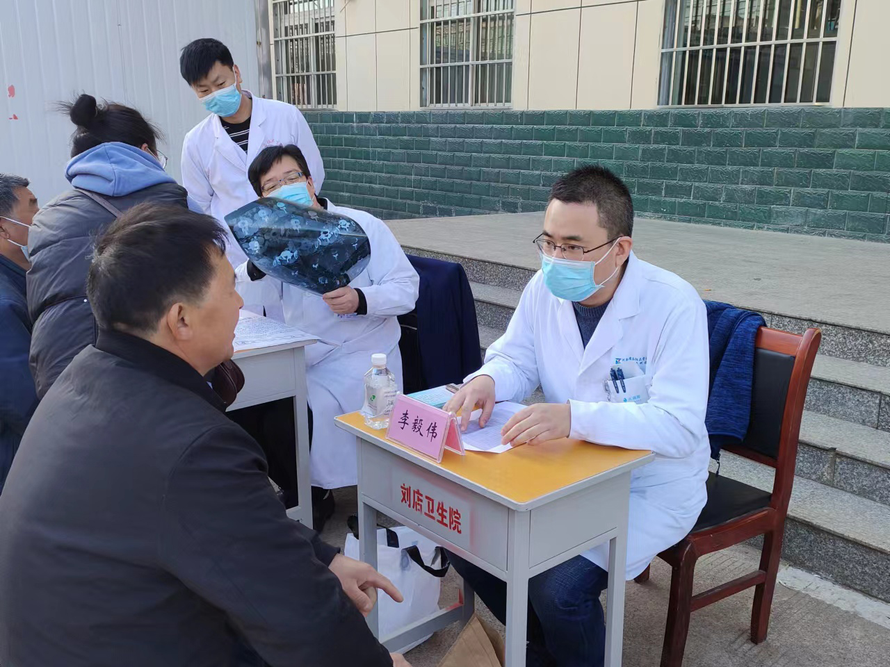 上午九时左右,义诊团队到达刘店镇卫生院,前来问诊的群众已经在义诊活动的展板前排起了长队,等待诊疗开始。张同民副主任负责收集并登记患者信息,引导群众有序到相应的专家面前就诊。整个义诊场面火热但有序,测血压、健康咨询和诊疗用药咨询的群众络绎不绝。专家们认真接待每一位前来诊治的群众,详细询问每位患者平时身体状况、生活习惯、既往病史及服药情况,针对个人情况给与专业的合理用药和康复指导。面对需要药物治疗的患者,现场开具处方,尽全力让每一位前来就诊的群众满意。