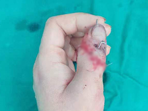 3月24日晚上6点,家住固始的熊女士在家做饭时用刀不慎,意外导致左手拇指离断,紧急前往当地医院进行了再植手术。但术后拇指远端血液循环较差,出现了缺血的情况。为了保住拇指,患者及家属自驾车赶路800多里,于3月25日18:30来到我院郑州院区显微创伤骨科。