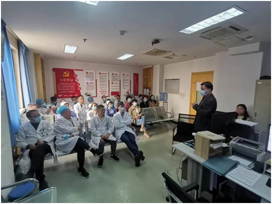 接下来,医保办副主任姜兆一向医护人员传达医保限支付政策、异地就医政策和急诊入院患者的流程、注意事项。