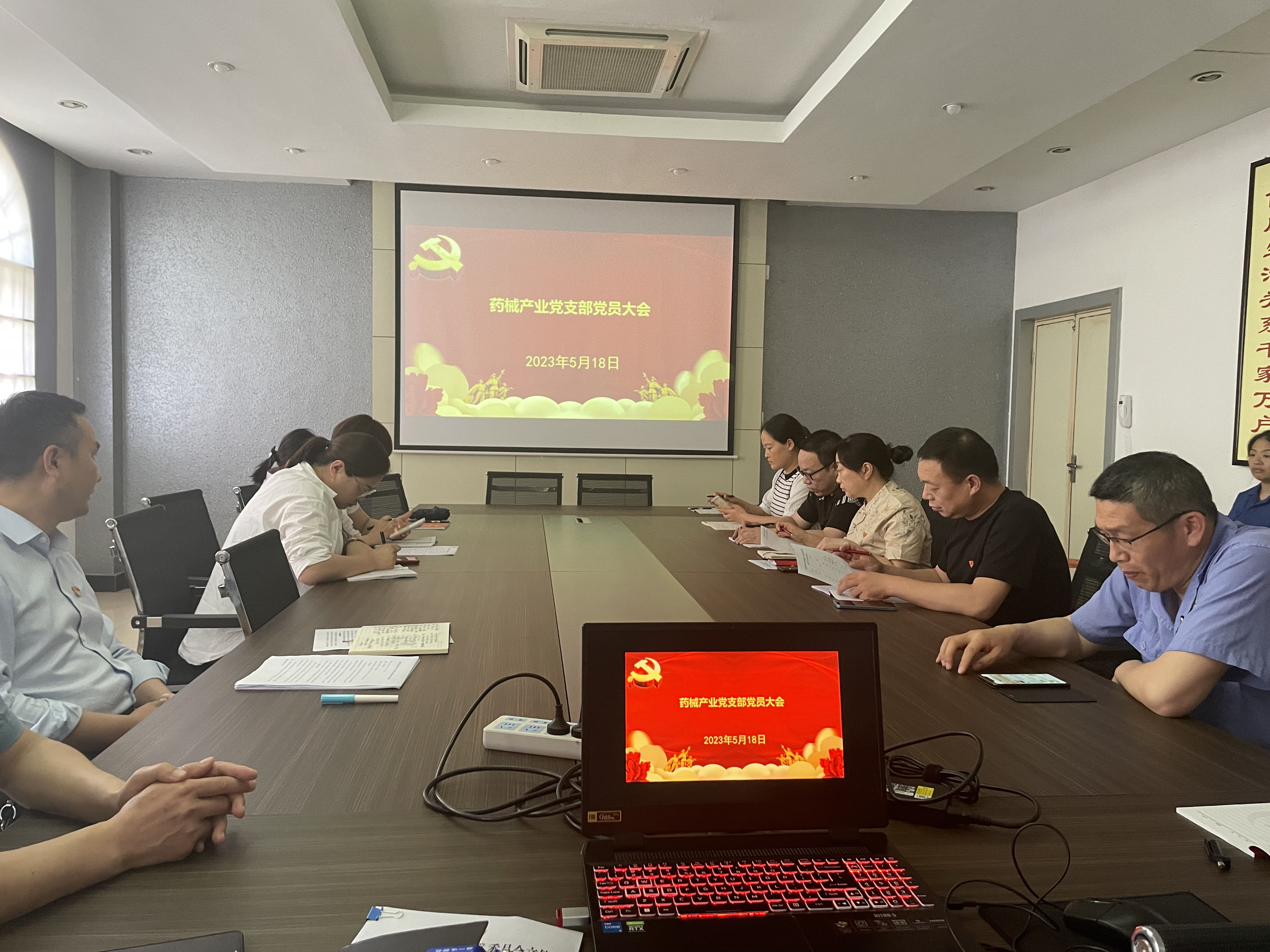 5月18日下午,在洛正药业一楼会议室,药械产业党支部召开2023年第二次党员大会暨“学思想、强党性、重实践、建新功”专题研讨会,深入学习贯彻习近平新时代中国特色社会主义思想,集中传达学习院党委重要指示以及医院重点工作部署,持续推动日常工作与主题教育融合提升。医院制剂科及产业单位20多名党员参加会议,党支部书记陈文鹏主持会议。