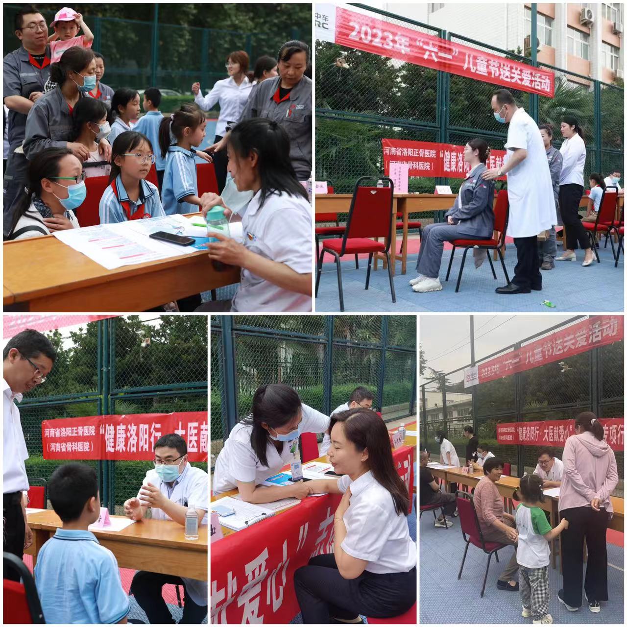 “六一”国际儿童节来临之际,5月31日下午,由我院资产与经济管理部组织,联系洛阳机车厂工会,门诊中医综合治疗二区、整脊科主任赵金风、治未病门诊主任黄满玉、小儿骨伤二科主诊医师仝彦格、颈肩腰腿痛三科医师胡闯北等7人组成专家团队来到洛阳机车厂学校,开展“健康洛阳行?大医献爱心”志愿服务专项行动之义诊及健康知识宣讲活动,为洛阳市机车厂幼儿园和小学的老师、小朋友和家长们送去节日祝福和健康服务。
