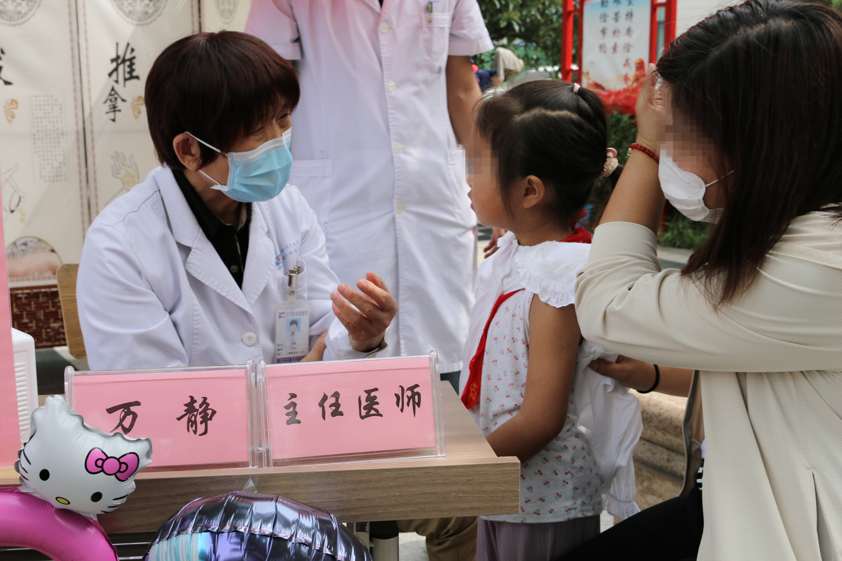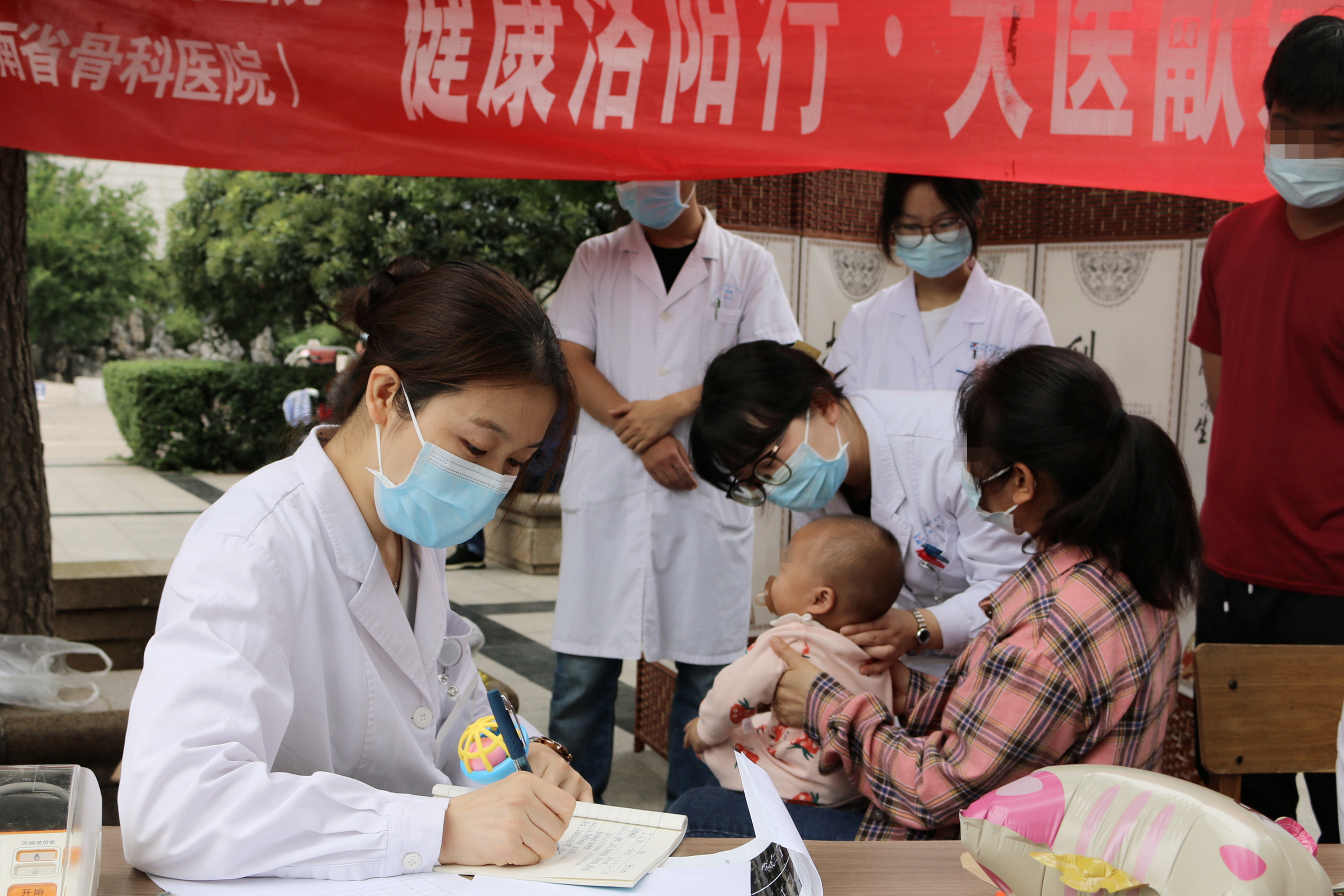 义诊活动于上午8时开始,众多家长携儿童慕名而来。对每一位家长和孩子,万静主任都是详细问诊、仔细查体,对家长们诸多的疑惑和问题进行详细解答,提出专业建议。其他义诊人员有的为排队等候的家长们进行信息登记,有的发放宣传资料开展现场儿童康复知识宣讲,有的开展步态、肌力等辅助检查,有的维持现场秩序、发放卡通气球,营造祥和氛围。义诊活动忙碌有序、有条不紊地开展。