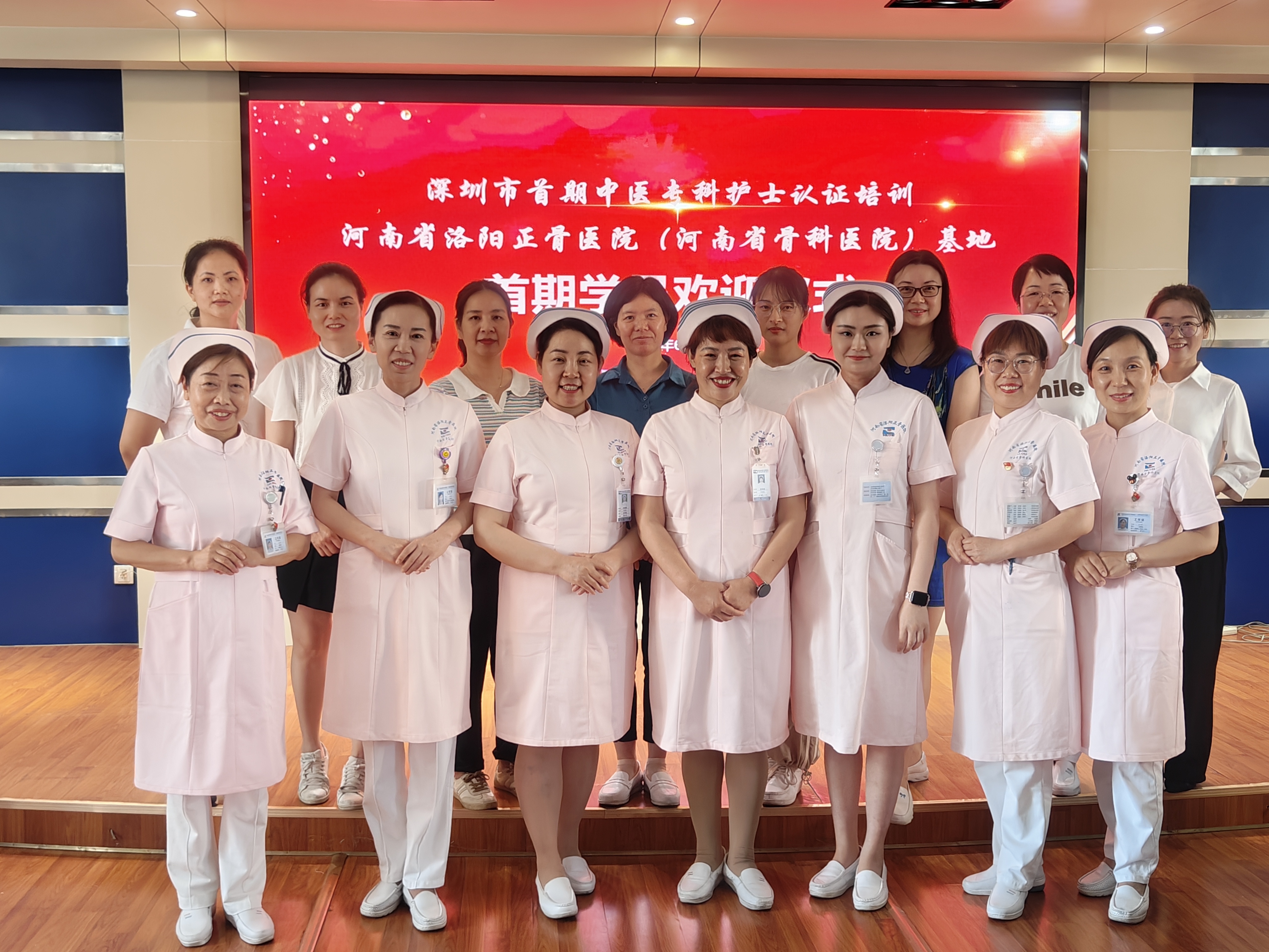 2023年6月5日,我院迎来深圳市首期中医专科护士进阶培训洛阳正骨医院基地游学的第三批来自深圳平乐骨伤科医院、深圳市宝安区中医院等6家医院8名学员和1名随行辅导员,开班仪式在洛阳东花坛院区3号楼5楼报告厅举行。洛阳东花坛院区管委会主任宋宏卿、护理部主任邢林波、副主任焦瑞娜、康复院区护理部主任罗漫丽及我院相关医疗、护理导师参加本次仪式。护理部副主任焦瑞娜主持仪式。