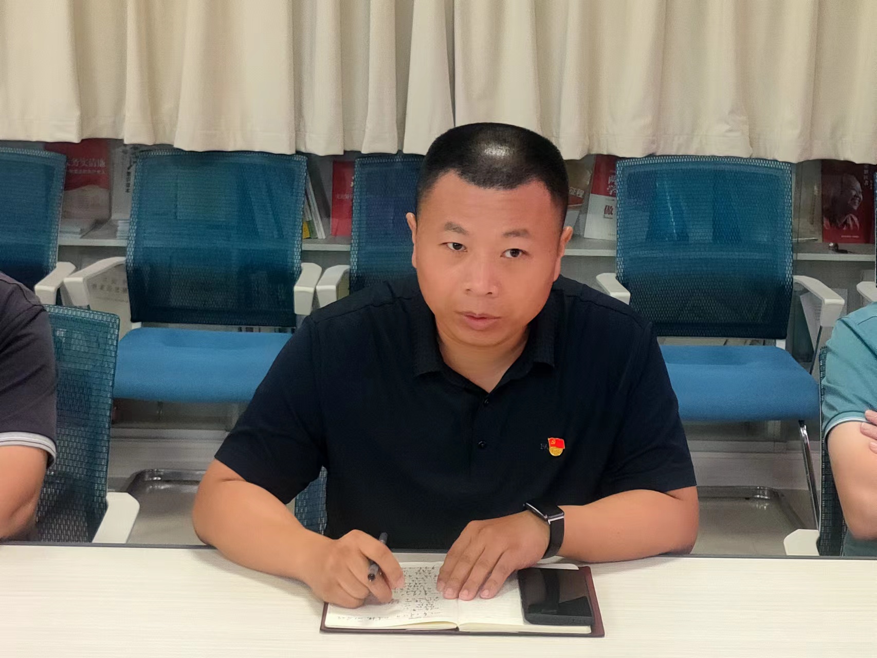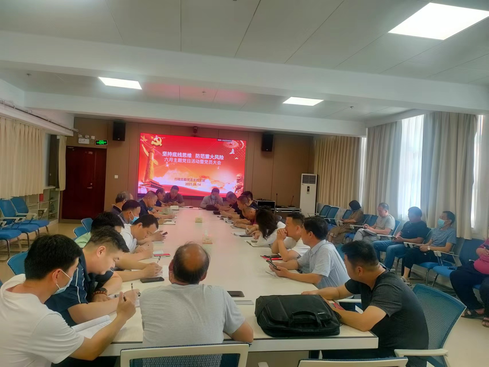 为深入贯彻落实习近平总书记坚守底线思维、着力防范化解重大风险的重要讲话精神,6月14日下午行政后勤党总支四支部在我院会议中心二楼会议室开展主题党日活动暨党员大会,刘学亮副院长及全体党员参加会议,支部书记张宏都主持会议。
