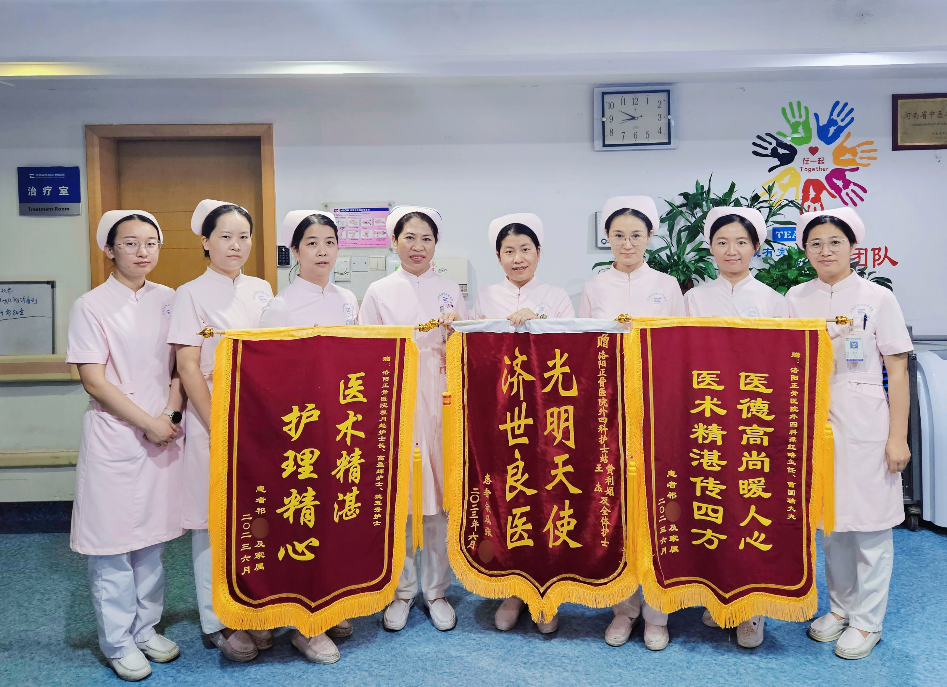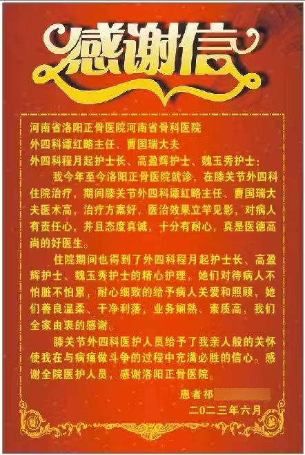 近日我院膝关节外三、外四科连续收到出院患者送来的锦旗和感谢信,赞扬医务人员精湛的医术,感谢护理人员精心的护理及无微不至的关怀和照护,表达着对医护人员的感激。