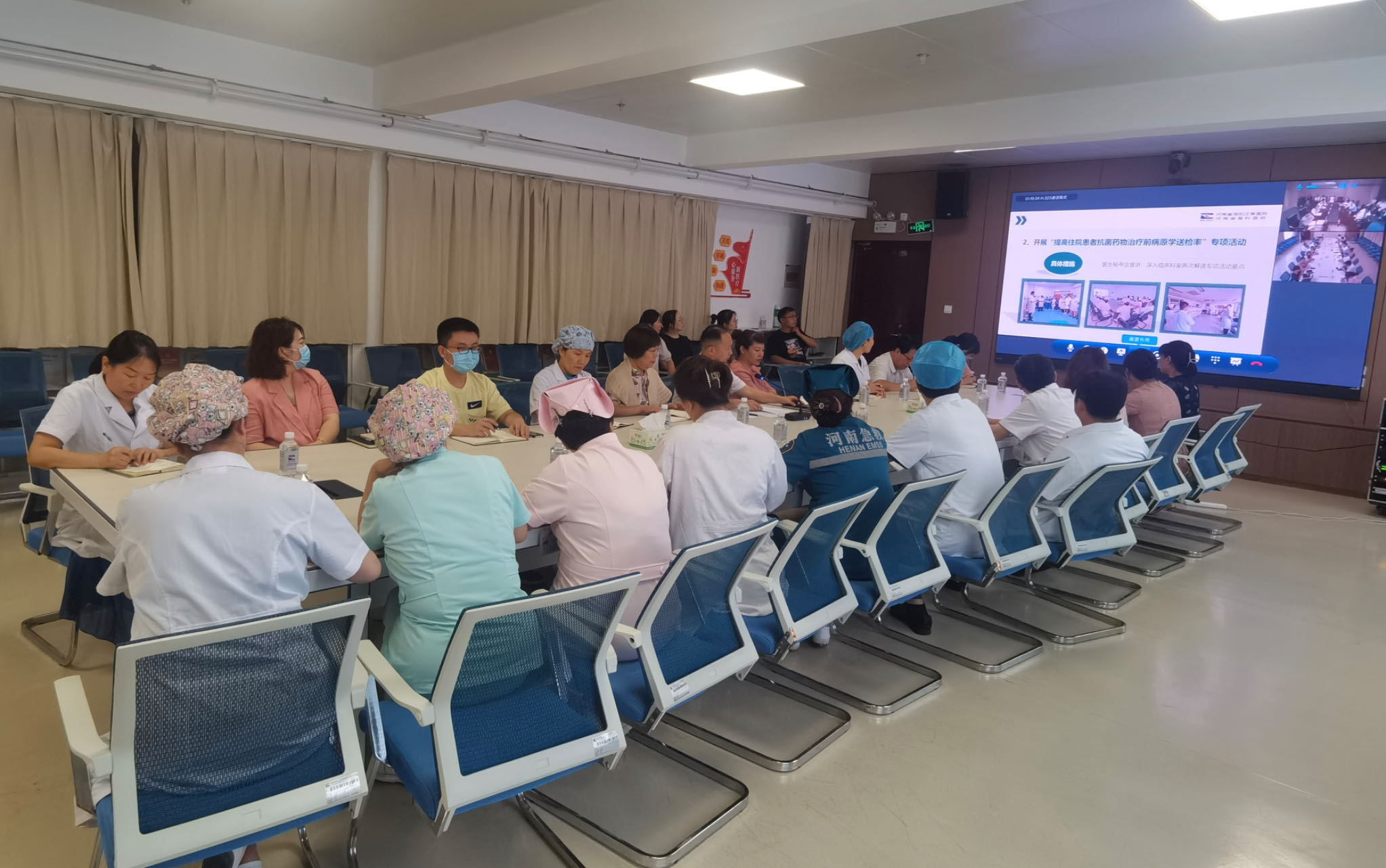 会上,感染管理科主任杨金莲、郑州院区感染管理科主任杨萌、康复院区感染管理科主任罗漫丽分别对三个院区的医院感染、传染病管理工作进行了回顾和总结。在手术部位感染控制、多重耐药病人管理、医务人员培训、手卫生依从性等方面都取得了较好的成效,尤其是“抗菌药物治疗前病原学送检率”有大幅提升。会议明确了下半年的工作重点为推进三院区同质化管理、持续提高住院患者抗菌药物治疗前病原学送检率、进一步加强医院感染监测和管理等。