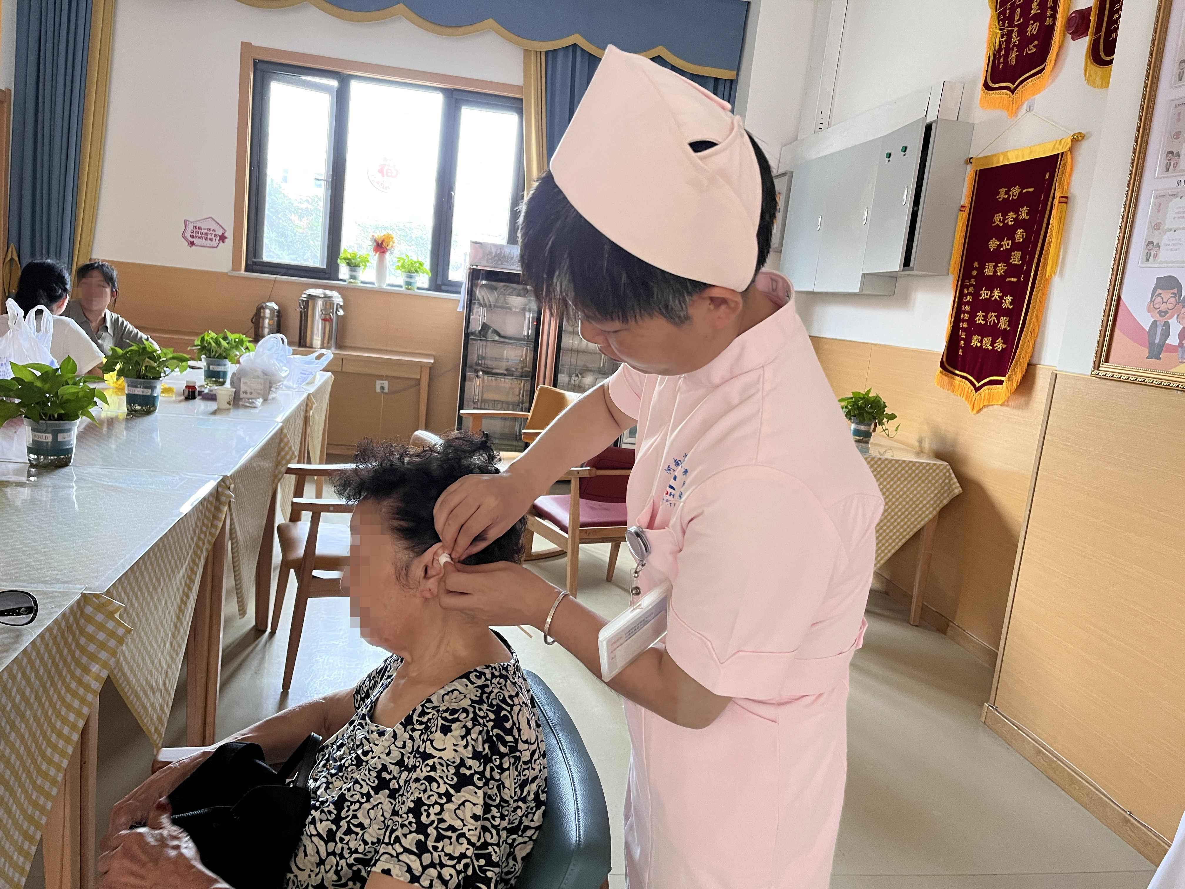 义诊现场气氛活跃、秩序井然,前来咨询、问诊的老年人络绎不绝。李麦朵副主任首先进行了《膝关节骨性关节炎的防治和保健》的讲座,对前来问诊的老年人进行了科普知识的宣教和预防。许多老年人长期遭受颈、肩、腰、腿痛与各种内科疾病的困扰,针对这些情况,李麦朵副主任通过现场进行特色治疗方式为老年人缓解其颈、肩、腰、腿等处的不适,并仔细询问老年人日常生活细节,给予他们日常生活、活动锻炼的科普。董利青护士为前来义诊的老年人进行耳穴疗法,通过对耳朵区域的穴位刺激,达到调节身体功能与缓解疾病的效果。古人常言,老吾老以及人之老,幼吾幼以及人之幼。关爱老年人,为社会进一份责任,是我们每个人的责任和义务。
