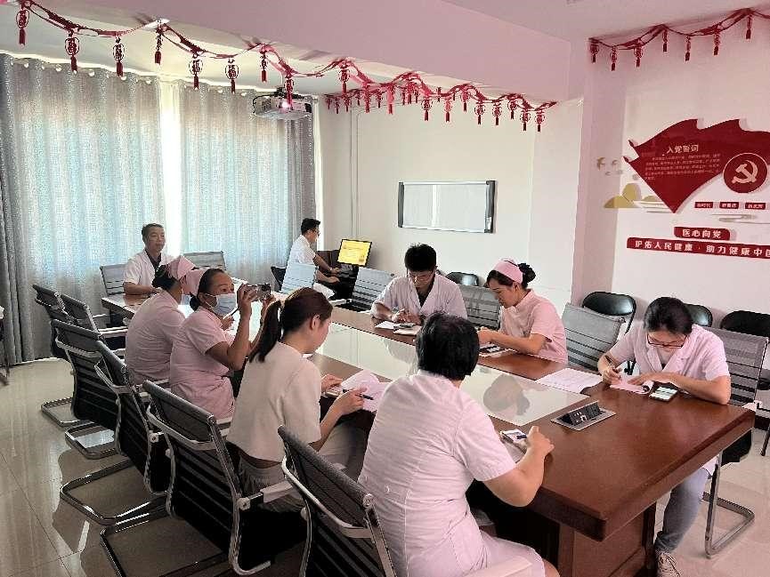 首先,樊金辉同志带领大家学习习近平总书记在全国组织工作会议对党的建设和组织工作的重要指示,从充分认识习近平总书记关于党的建设的重要思想的重大意义、深入把握习近平总书记关于党的建设的重要思想的丰富内涵、把习近平总书记关于党的建设的重要思想学习领会好、贯彻落实好三个方面为重点,落实“要坚持以习近平新时代中国特色社会主义思想为指导,全面贯彻党的二十大精神,深刻领会党中央关于党的建设的重要思想”,习近平总书记指出:“反腐败是最彻底的自我革命”“反腐败斗争就一刻不能停,必须永远吹冲锋号”“要把不敢腐、不能腐、不想腐有效贯通起来,三者同时发力、同向发力、综合发力”,作为医务工作者,我们要进一步提高全体党员廉洁自律意识和规范行医自觉性。