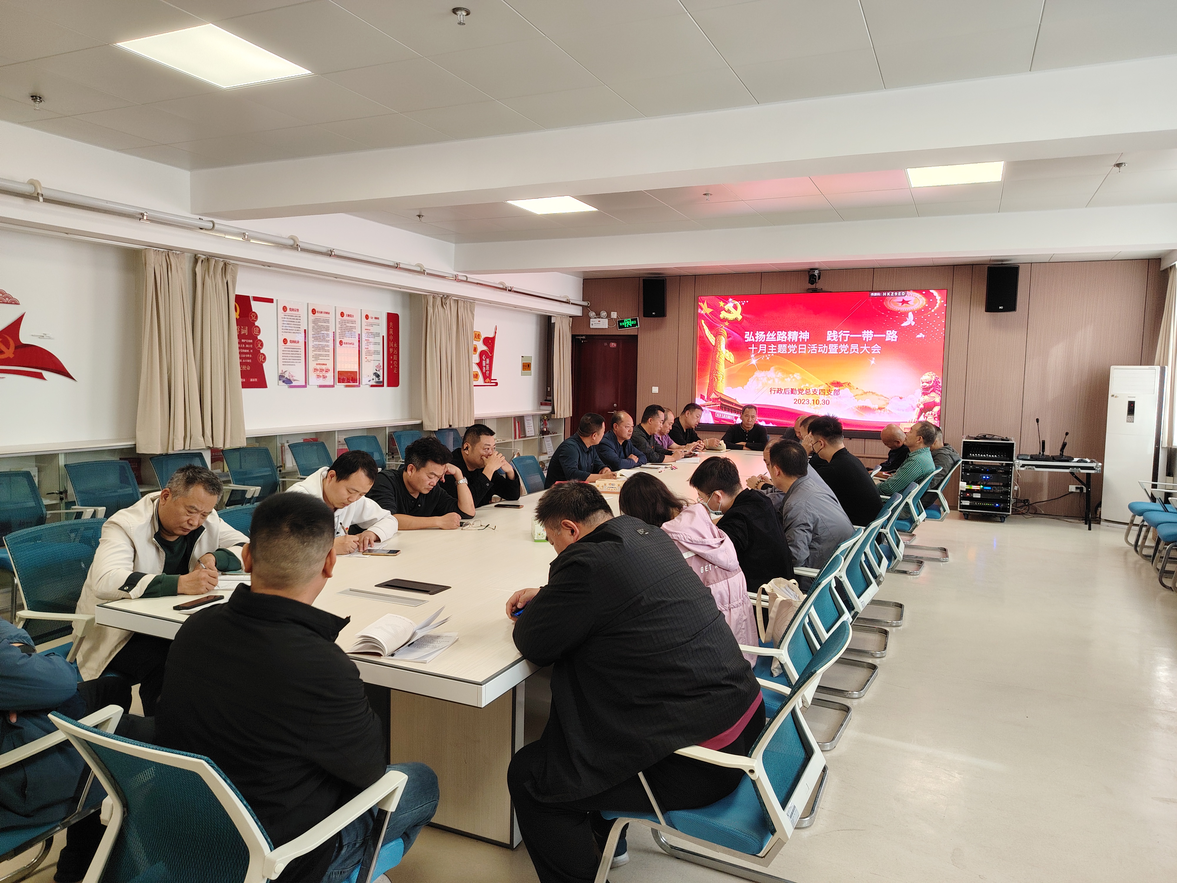 2023年是习近平总书记提出共建“一带一路”倡议10周年。为了深入学习贯彻习近平总书记的重要讲话精神,推动党建与业务融合发展,10月30日下午行政后勤党总支四支部在我院会议中心二楼会议室开展主题党日活动,支部书记张宏都主持会议。