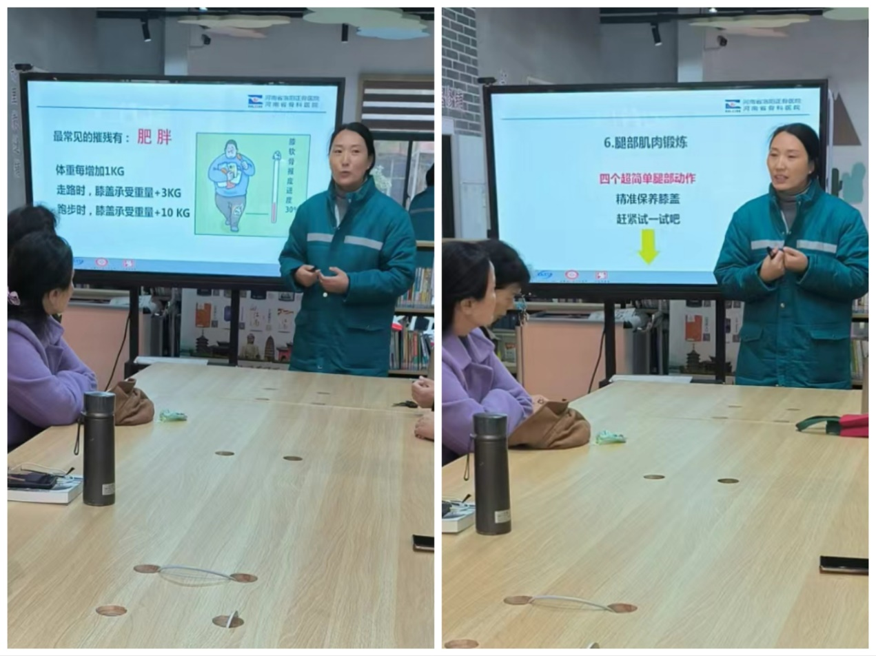 首先,由苏春霞护士长讲解了“且行且珍‘膝’”科普知识专题讲座,用通俗易懂的PPT展示,深入浅出地分析讲解了膝关节的保健知识,干货满满,与生活紧密相连。