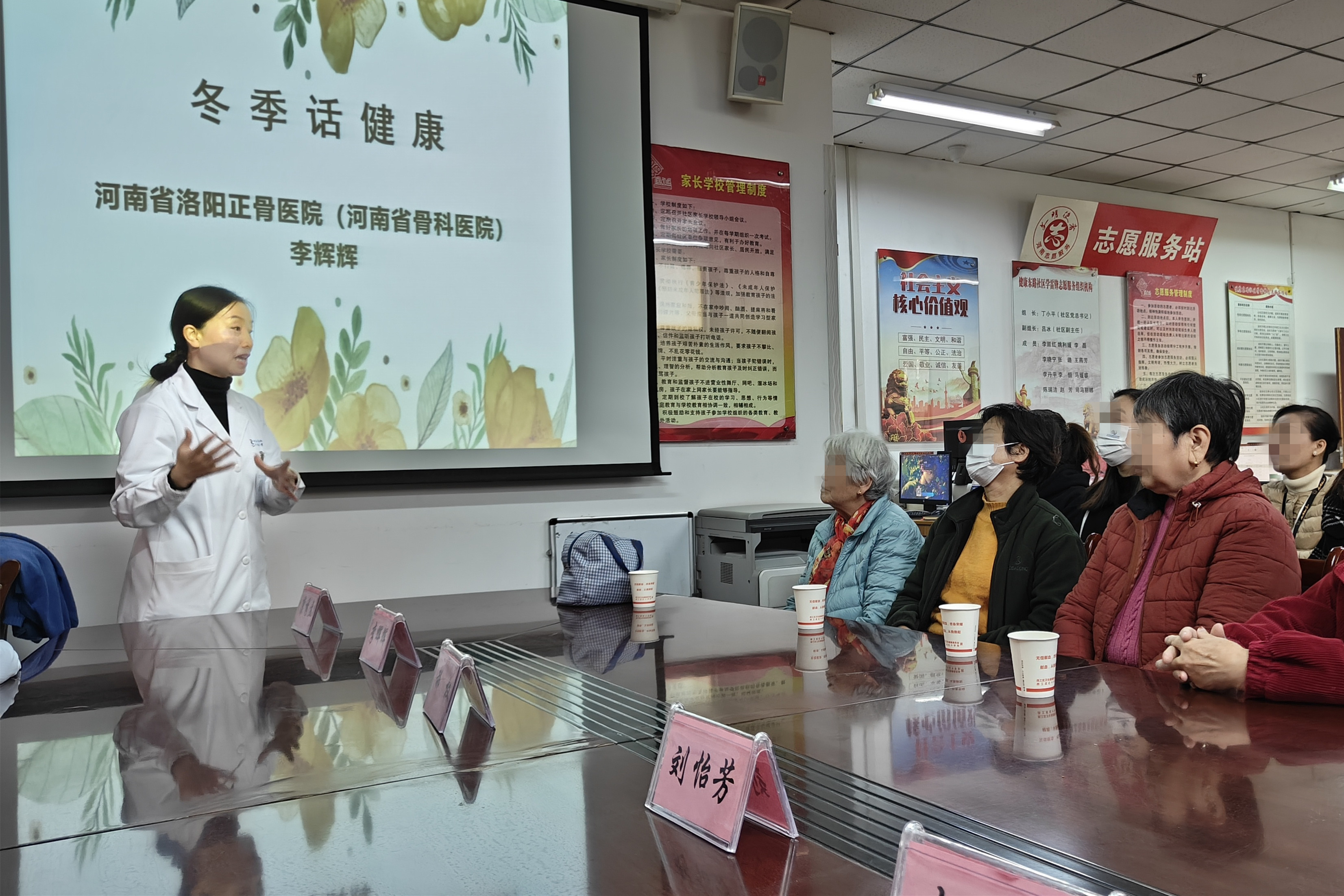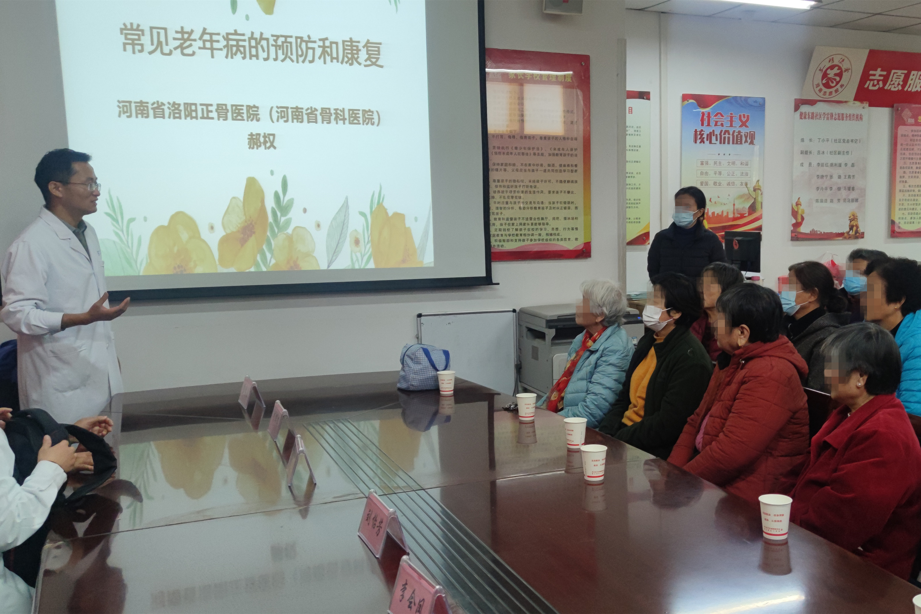 到达健康东路社区后,专家们首先举行健康科普讲座,向社区群众讲解日常生活中的各种疾病的预防与治疗,并用通俗易懂的语言向大家讲解了冬季老年高血压患者注意事项、冬季话健康、常见老年病的预防和康复、颈椎病健康教育等科普知识宣教。健康科普讲座结束后,义诊环节正式开始,专家们热情接待每一位前来就诊的患者,针对不同病情,给出合理的治疗建议。