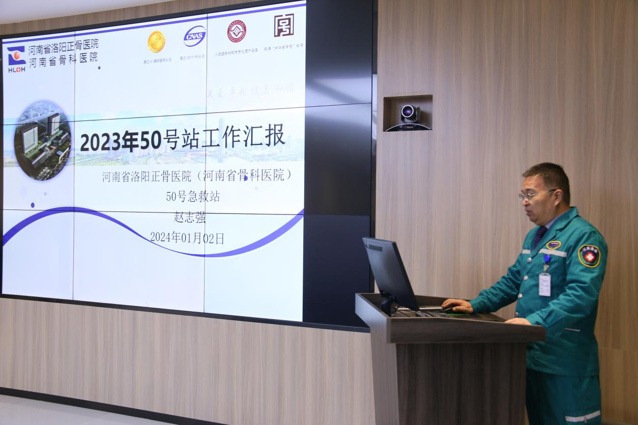 会议由郑州院区管委会委员牛伟刚主持,首先由潘晔书记致辞,欢迎郑州市紧急医疗救援中心各位领导专家对我院急救工作进行指导检查;随后我院郑州院区急救站赵志强主任详细汇报了急救站年工作量、设备设施、救护车辆管理、工作亮点及存在短板、教学科研、急救培训及2024年工作计划等;最后曹向阳副院长对汇报工作做了补充总结。