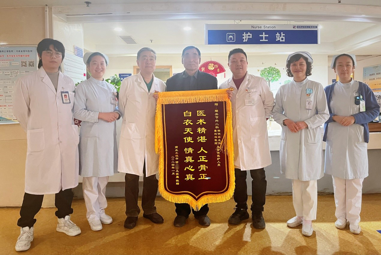 1月5日早上八点,一位患者家属满面笑容地手持“医术精湛,人正骨正,白衣天使,情真心真”的锦旗来到我院膝关节外二、五病区的护士站,高兴地说:“感谢杨主任、蔡医生,感谢邹护士长及全体的白衣天使们”。一句朴素的语言,一面沉甸甸的锦旗,代表了医护人员的患者付出,也代表了患者对医护人员的信任。