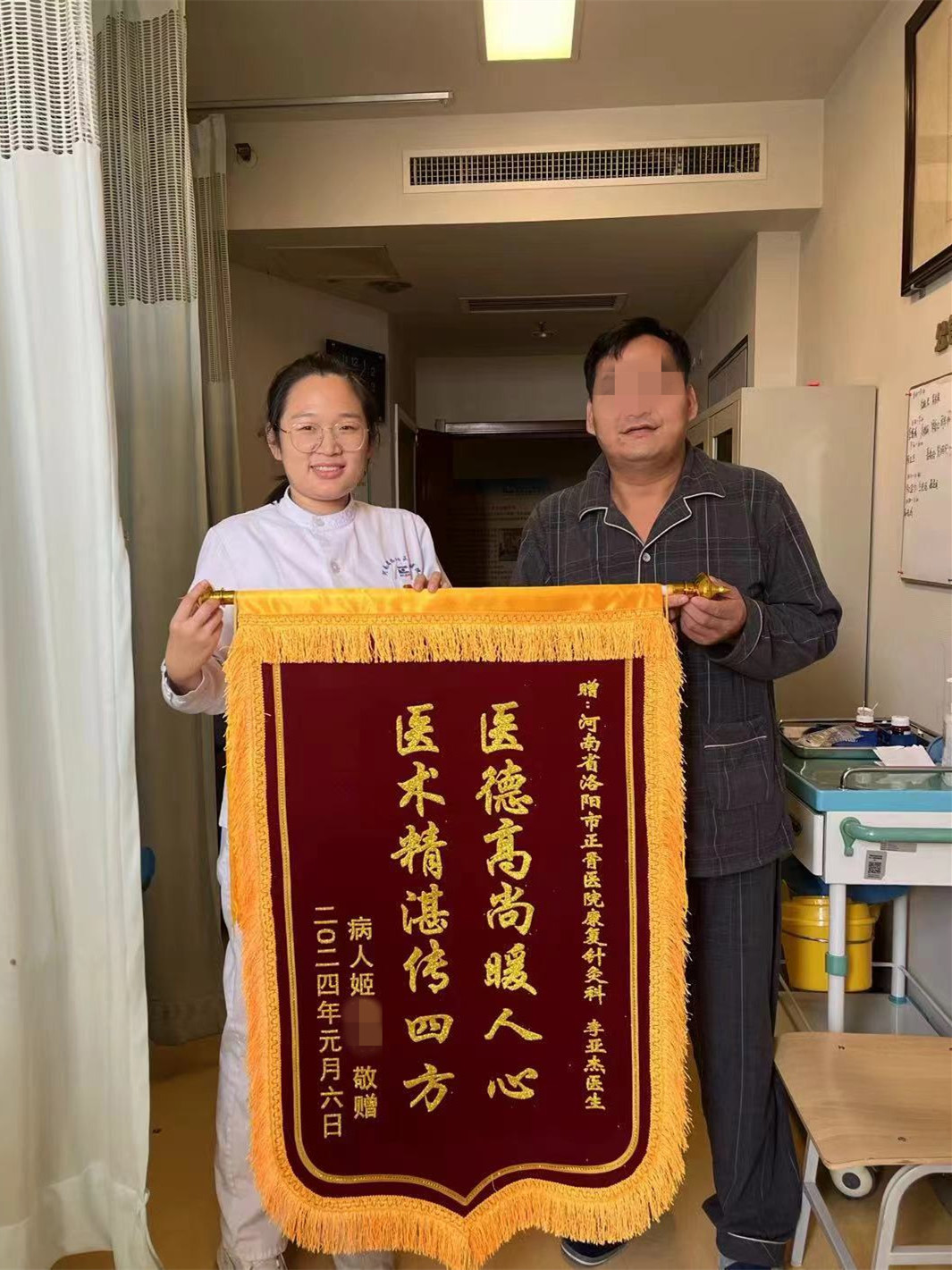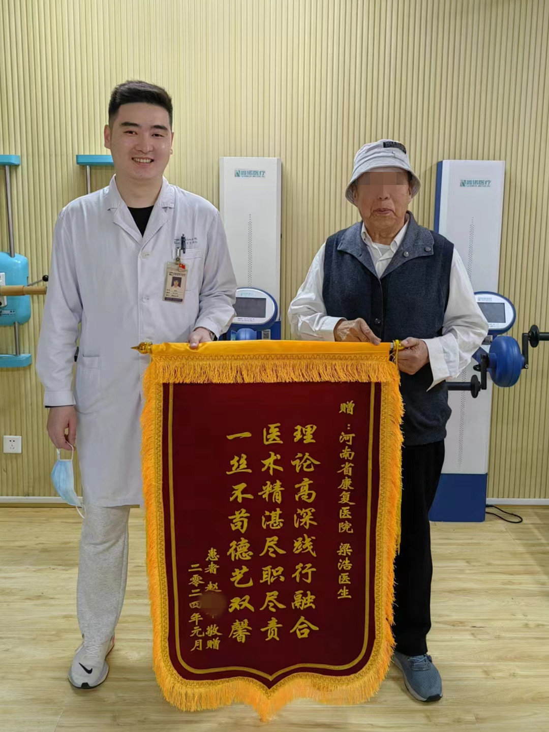 经过系统规范的康复诊疗,姬先生身体功能逐渐恢复,渐次可以下床、拄拐行走、脱拐行走,疼痛症状大幅缓解。姬先生神采飞扬地表示,“现在晚上终于能睡个好觉!不会疼醒了!”赵老先生肢体功能恢复良好,能够正常行走和上下楼梯,基本生活可自理。两位患者对治疗效果均表示认可和满意,用锦旗来表达感激,用朴实的言语诠释着和谐的医患关系。