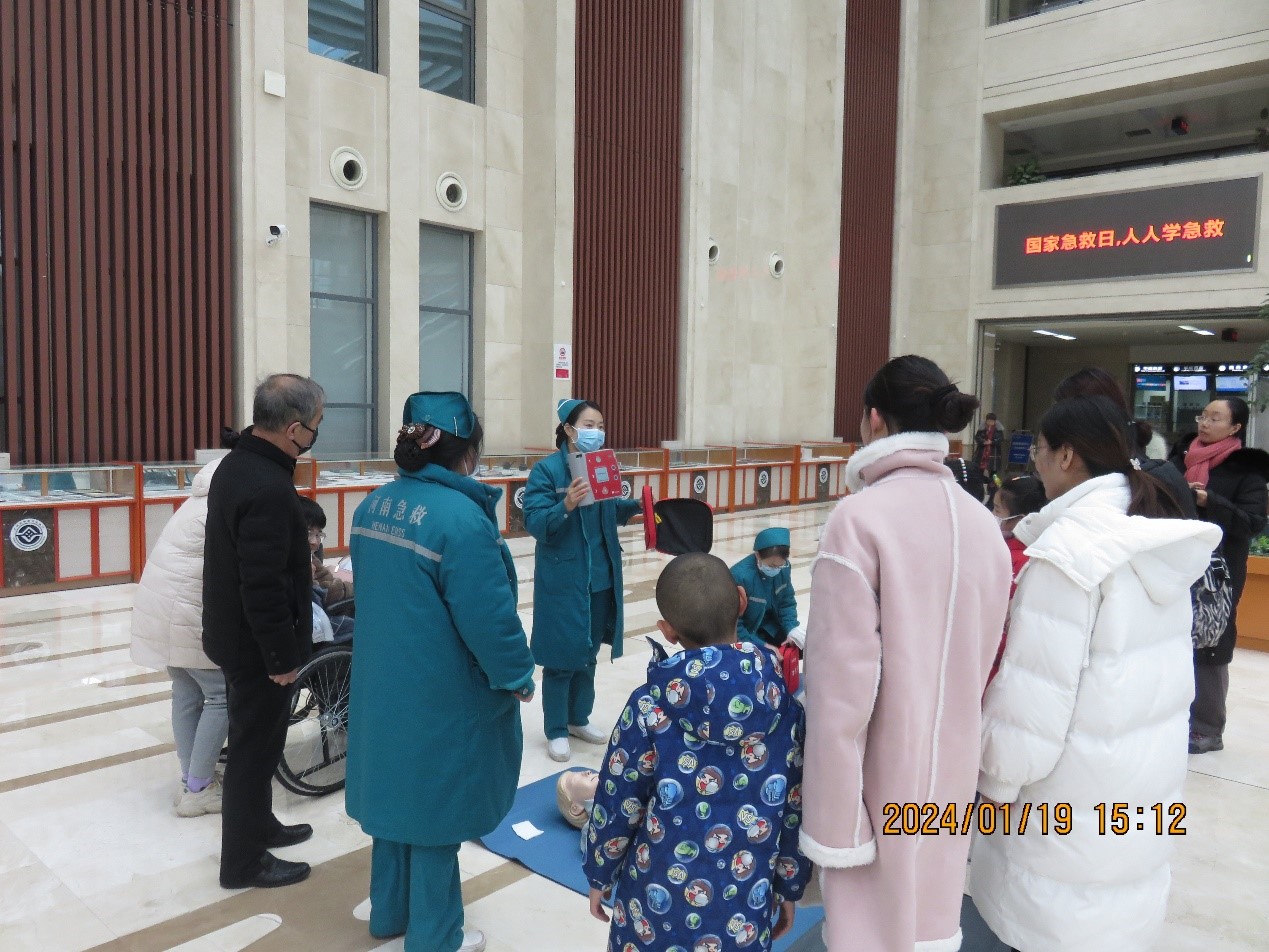 在2024年1月20日“国家急救日”来临之际,为响应郑州市卫生健康委员会、郑州市紧急医疗救援中心号召,进一步增强人民群众急救意识、提高自救互助能力。2024年1月19日15时,我院郑州院区急诊科在门诊大厅围绕“生命急先锋,救在你身边”的主题开展了急救知识普及宣传活动。