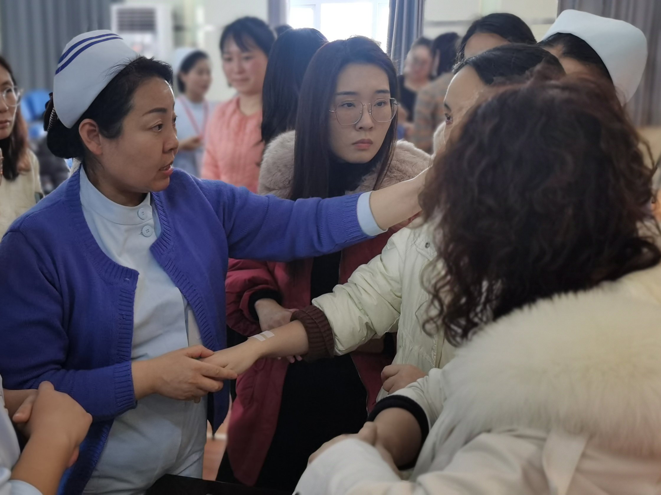 “针法”培训由护理部副主任焦瑞娜及其培训团队对腕踝针和揿针疗法进行理论讲解、标准手法、规范流程操作演示以及临床临床案例分享,让大家对腕踝针和揿针操作简便、损伤微小、安全无针感的神奇疗效有了更深刻的认知。