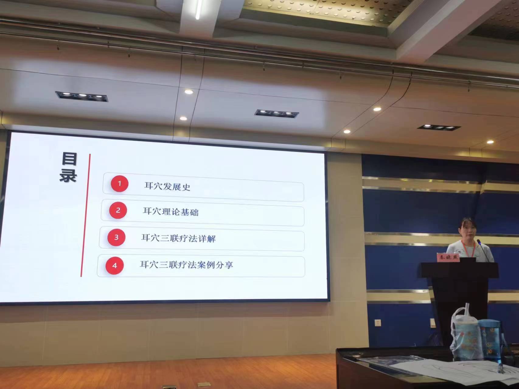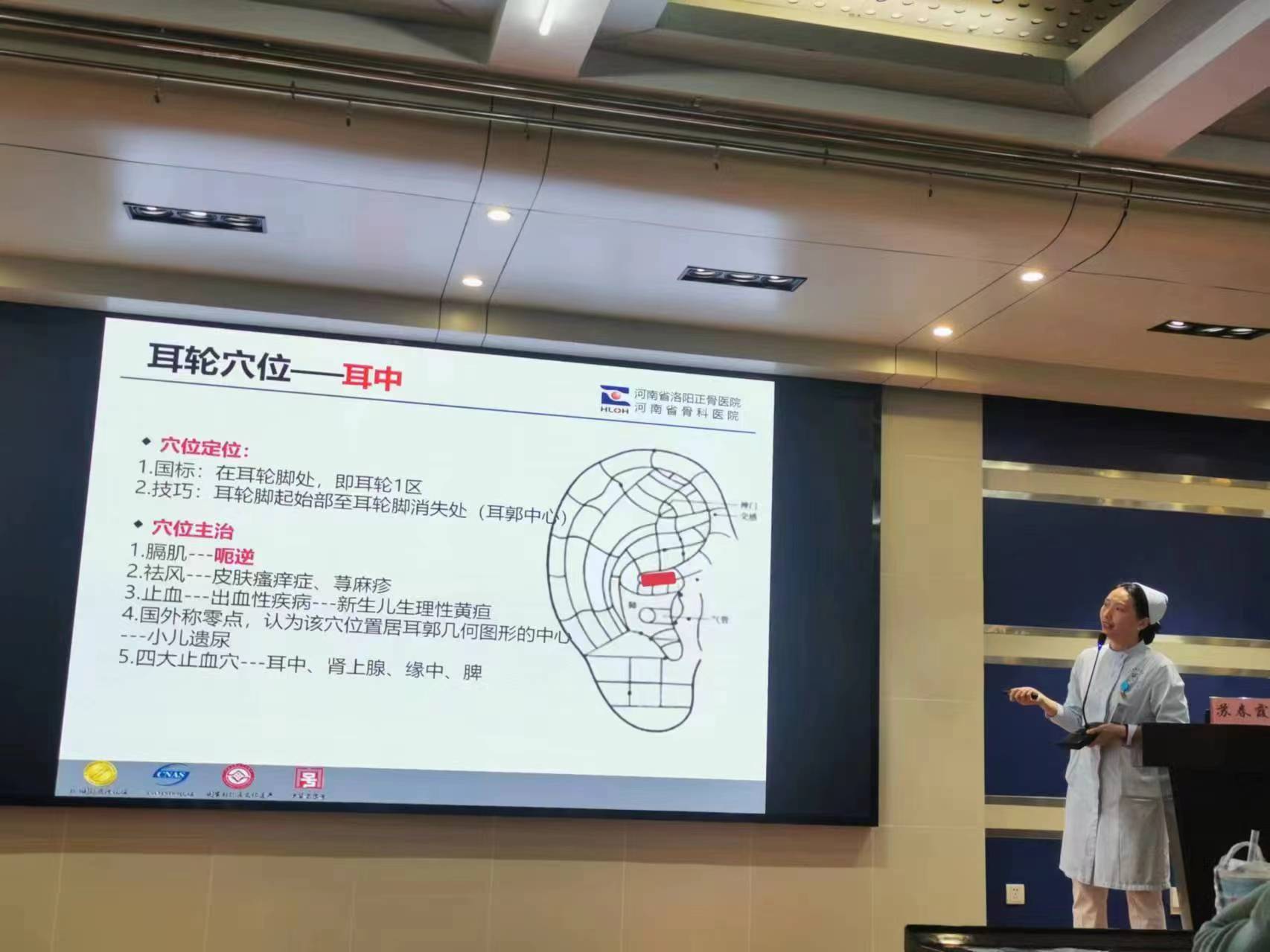 “耳穴疗法”有自己的刺激区,尽管集中在小小的耳廓上,但耳穴数量之多,仅次于体穴。特别是它还具有诊断、预防、治疗、保健四位一体的优点。膝关节外一科护士长苏春霞及其团队丰富的理论讲解和分组实操练习,激起学员们强烈的兴趣,在实操练习环节给予学员耐心指导,并分组演示、考核、答疑,使学员捋清耳穴治疗思路,“一技在手,小病不愁”用耳穴服务周边群众,更好的传承和发展中医技术。