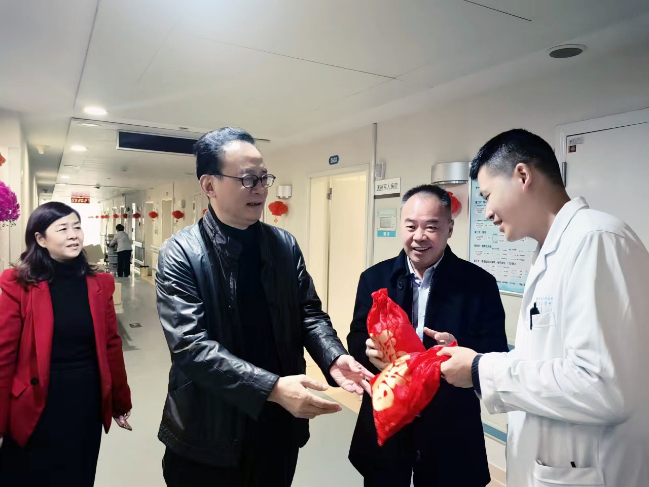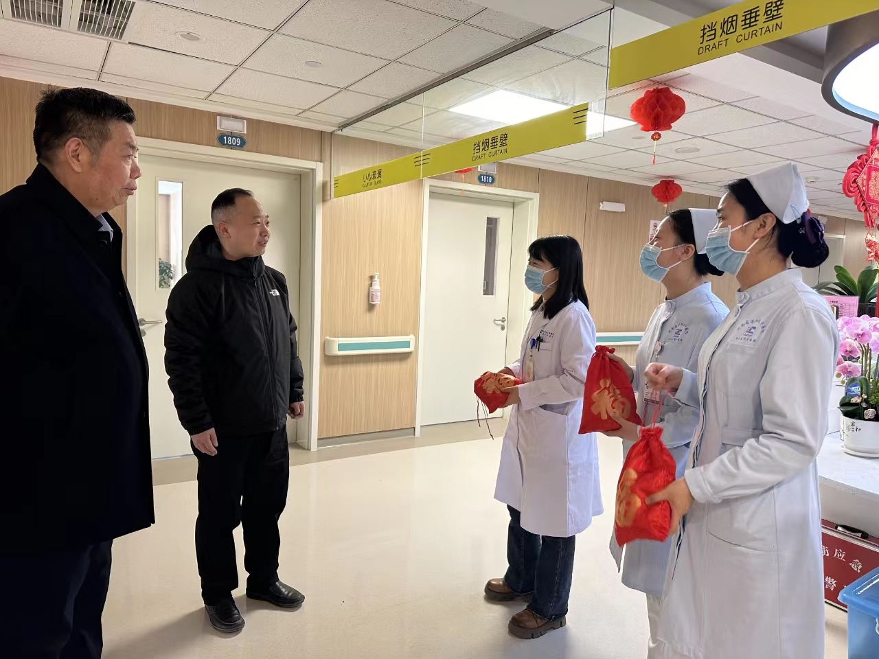 上午九点,医院党委书记潘晔,党委副书记、院长吴晓龙,院领导赵长军、赵明宇、李记天、滕军燕、刘学亮带领各院区管委会及相关职能部门负责人,分组前往洛阳东花坛院区、郑州院区、康复院区及开元门诊部,向门诊、病区、医技、药学、后勤保障等各岗位值班人员送上新春祝福与真诚慰问。