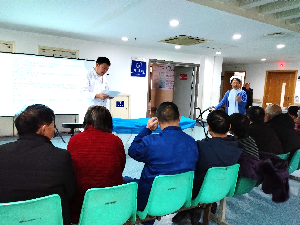 2月26日下午,为帮助广大膝关节疾病患者早日康复,在2号楼11楼膝关节外三四科大厅,主治医师曹国瑞博士和护士长程月起共同主持开展了“膝关节置换术围手术期”健康宣教活动,膝关节外科诊疗中心患者纷纷前来参与。