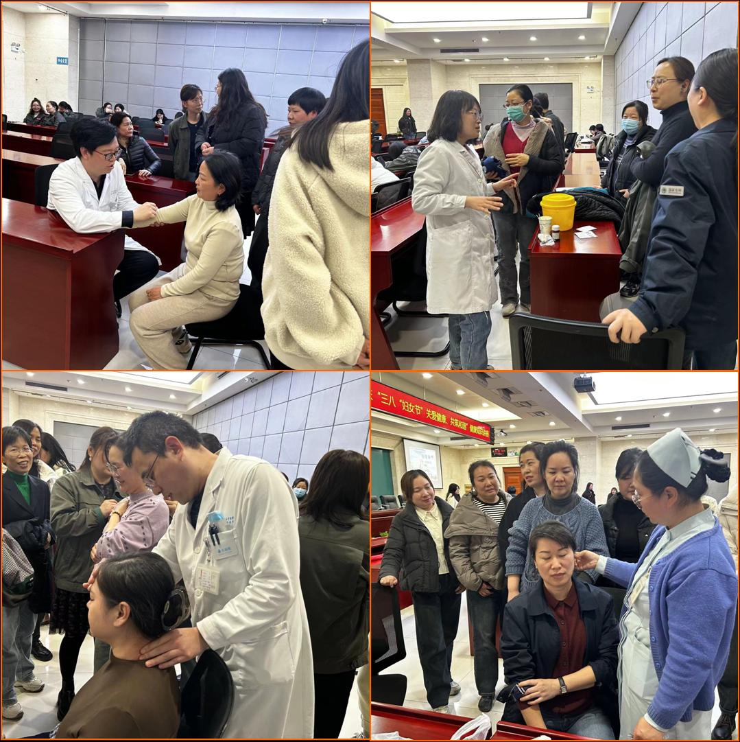 针对该单位职工久坐、长期伏案工作导致颈腰部疼痛多发等问题,赵晓琳医师、李毅伟医师分别作了颈椎病、腰椎病的预防治疗讲座,王淑梅护士长、程玲玲主管护师现场指导大家进行了颈椎病、腰椎病的功能锻炼活动。
