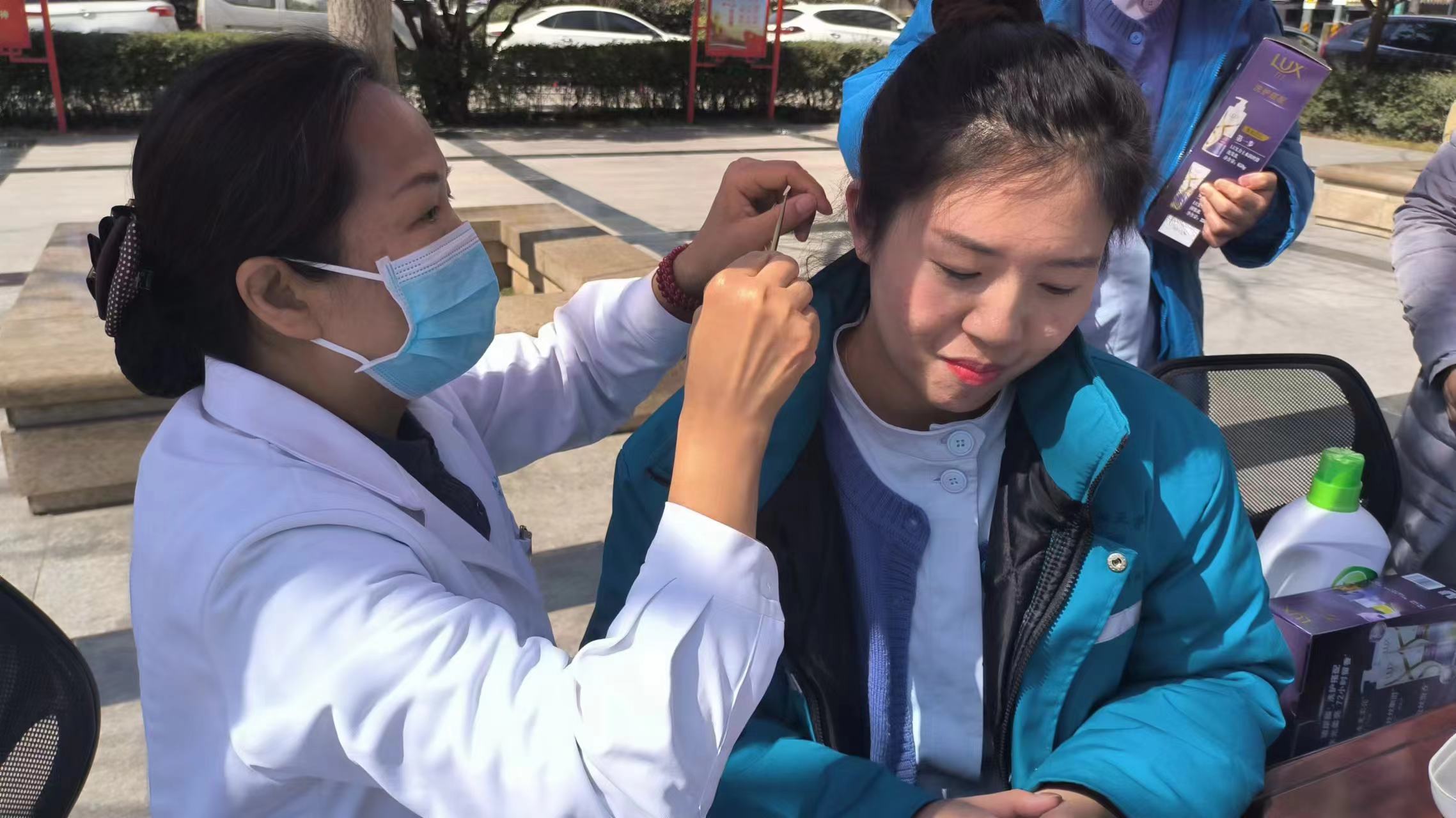 活动现场,治未病门诊(中医护理门诊)工作人员还为在场的女同胞们免费进行贴耳穴、测血压、中医体质辨析及常见病健康宣教等。