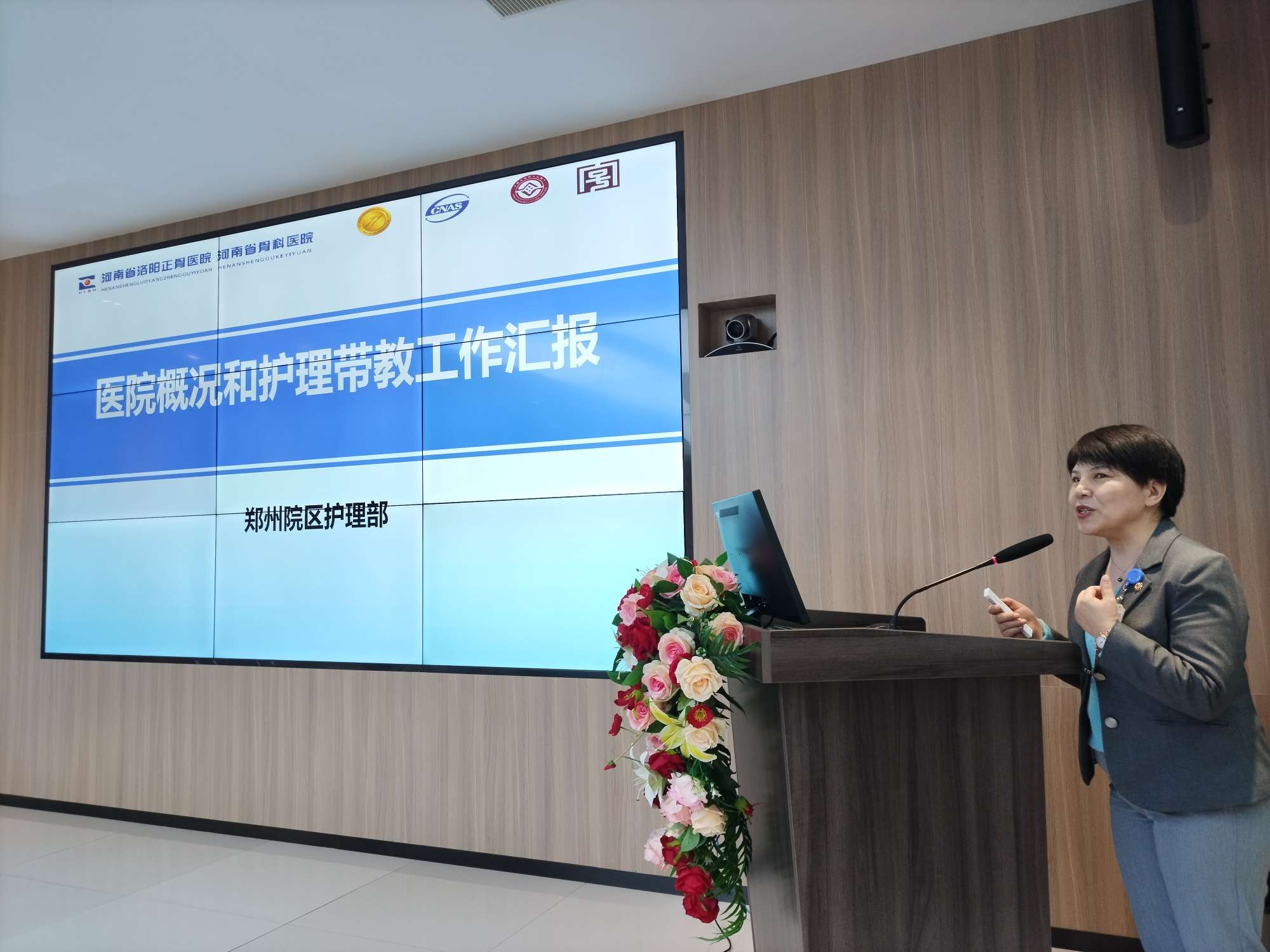 郑州院区护理部主任吴松梅汇报了实习及带教情况,对我院护理实习工作计划管理做了详细介绍,表示我院将积极帮助毕业生成长,期待更多优秀的毕业生来院实习和发展,不断拓展校院合作的深度、广度和温度。