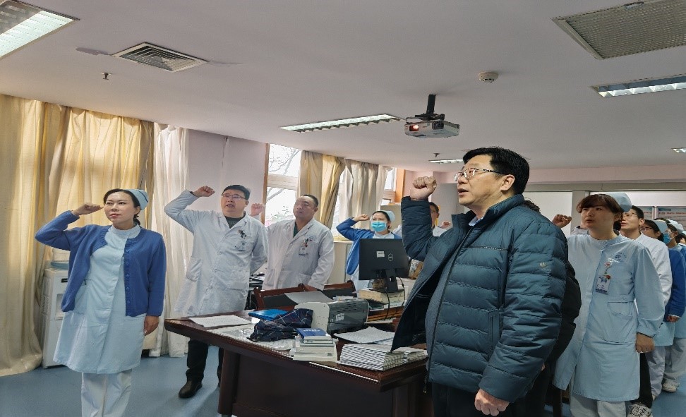 接下来,郭晓辉副书记进行了2024年党支部的工作安排,并强调了医疗安全,近期我院患者数量稳定在高位,大家的工作任务重、强度大,大家一定要合理安排时间,做到劳逸结合,在紧张工作之余也要注意身体,全体党员同志要以身作则,带头遵守医疗安全规章制度,共同营造一个安全、和谐的医疗环境,确保患者的健康和安全。