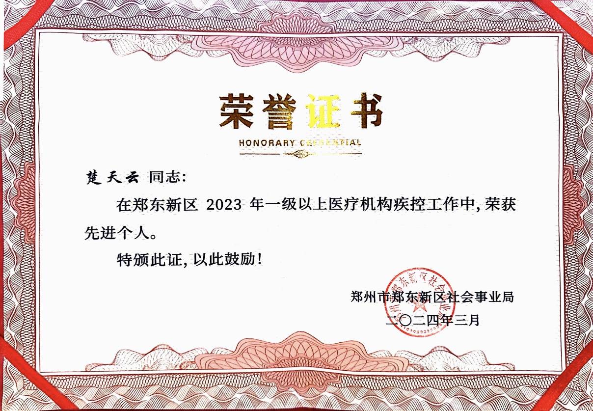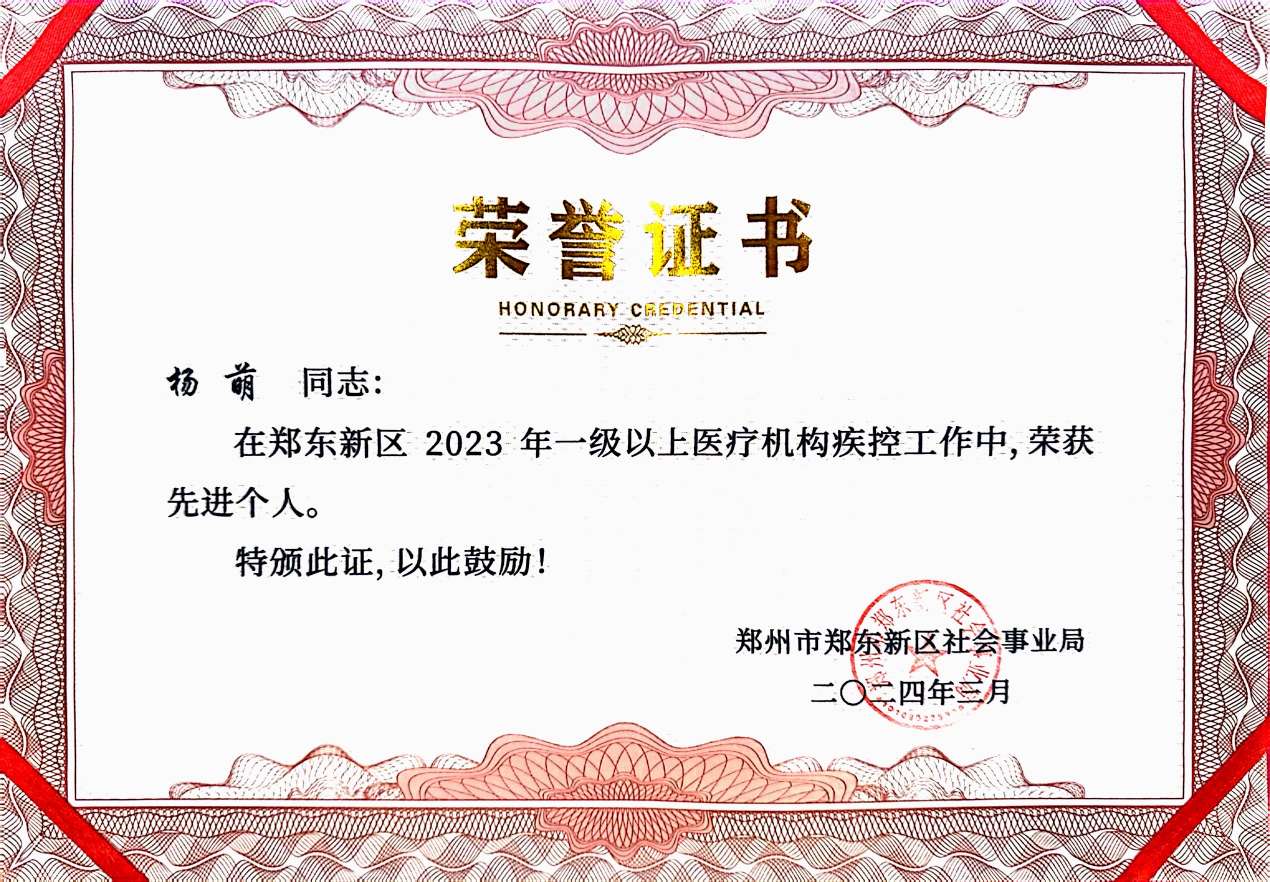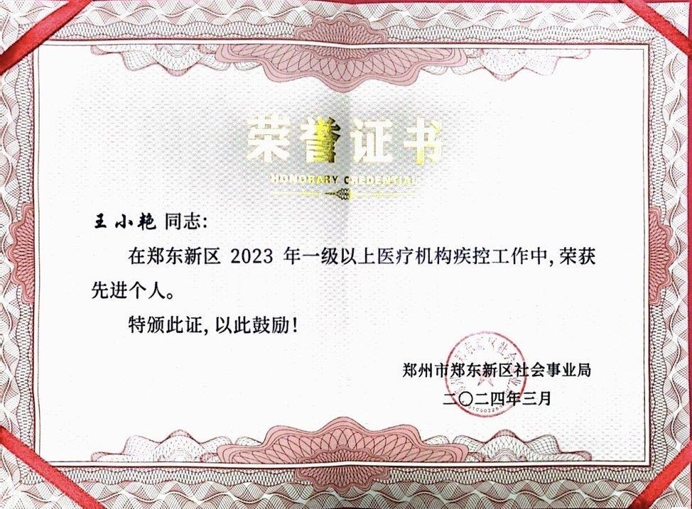 此次荣誉的获得是对郑州院区集体和个人在2023年疾病预防控制工作所取得成绩的肯定与鼓舞。2024年我院将以先进为榜样,再接再厉,再创佳绩,继续以人民健康需求为导向,创新医防协同的工作机制,夯实基层防控基础,打造高水平的公共卫生应急防控救治队伍,提升传染病预防控制的能力,强化慢性病早期筛查,完善健康管理的适宜技术和服务模式,持续提升慢性病预防控制能力,加强诊断救治保障服务,助推医院高质量发展,为推进健康河南建设再立新功。