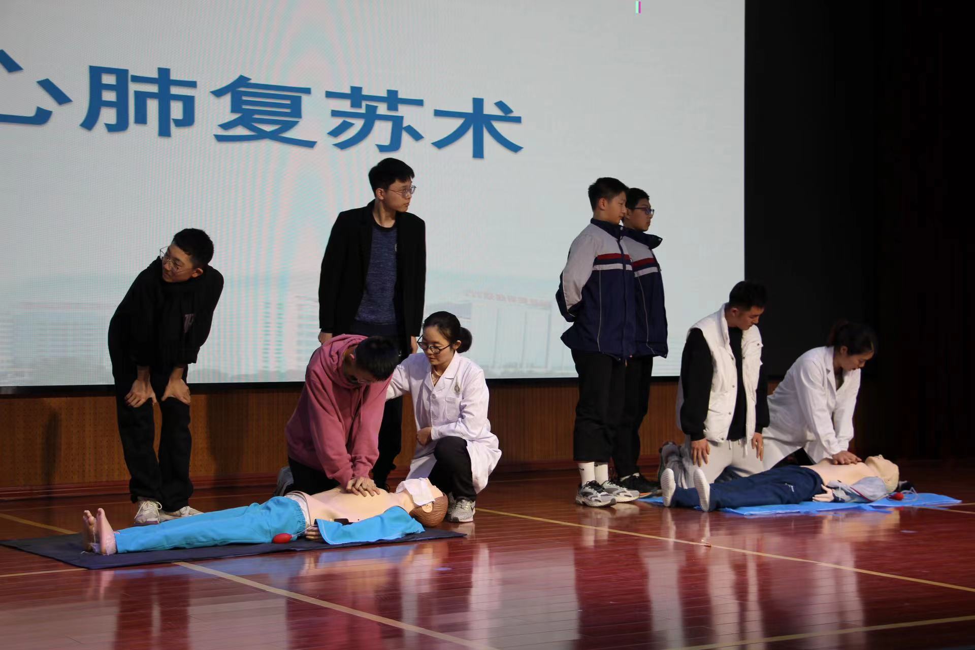 溺水、心脏骤停、气道异物梗阻……在与死神争分夺秒的过程中,正确进行急救至关重要。为进一步普及应急救护知识,提高校园师生在面对突发和意外事件时的应变能力和自救能力,3月28日下午,受洛阳市医学会麻醉专业委员会邀请,我院麻醉科于国军主任与护士毛贝贝到洛阳市高新外国语学校,参加由洛阳市涧西区关心下一代工作委员会与洛阳市医学会主办的2024年中国麻醉周急救知识科普进校园活动,开展应急救护培训。