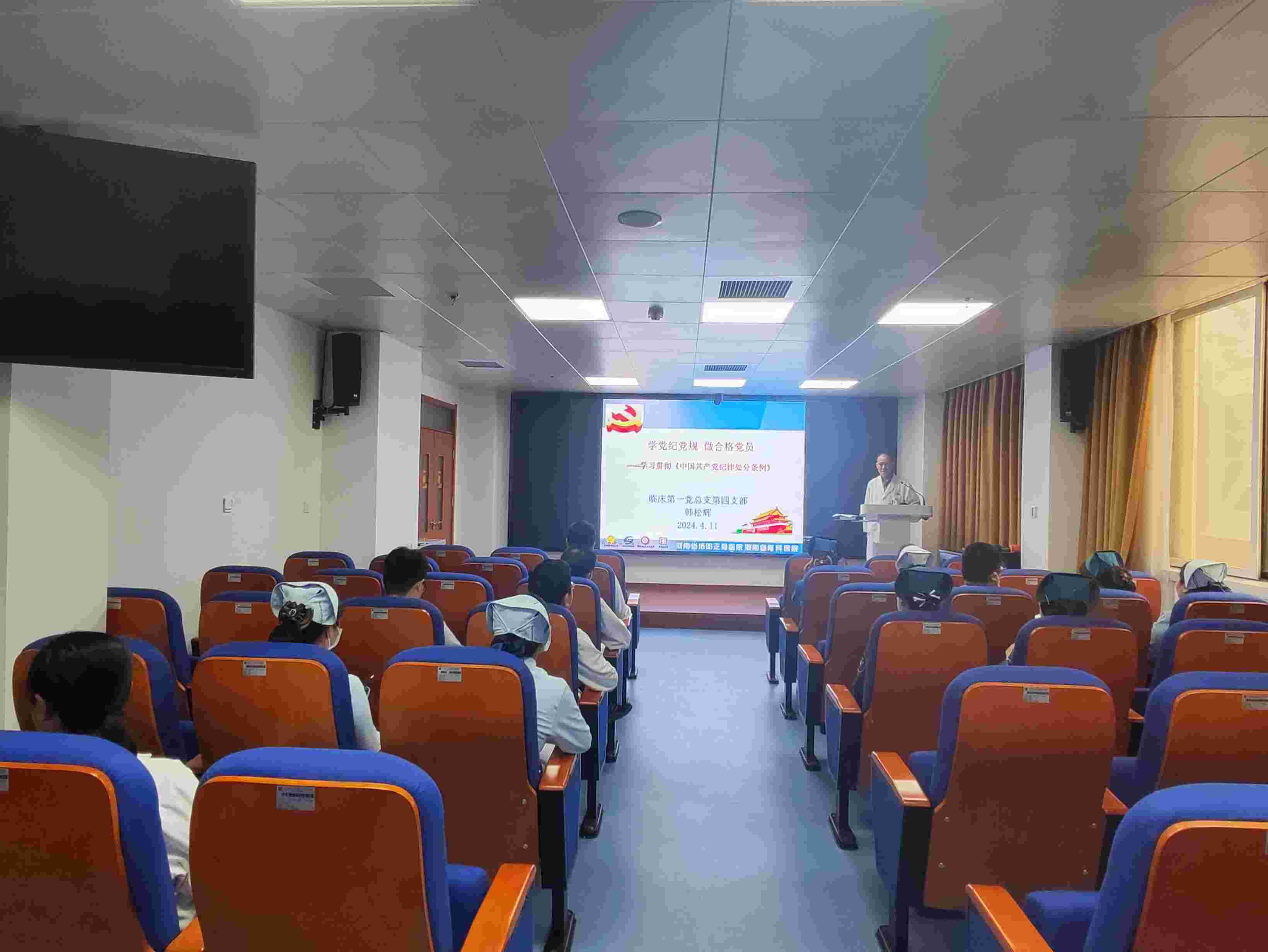 2024年4月11日,为全面贯彻党的二十大精神,深刻领悟“两个确立”的决定性意义、坚决做到“两个维护”,进一步严明党的政治纪律和政治规矩,带动各项纪律全面从严,不断增强自我净化、自我完善、自我革新、自我提高能力。临床第一党总支第四党支部组织进行主题党日活动,学习《中国共产党纪律处分条例》及《中国共产党党员网络行为规定》。