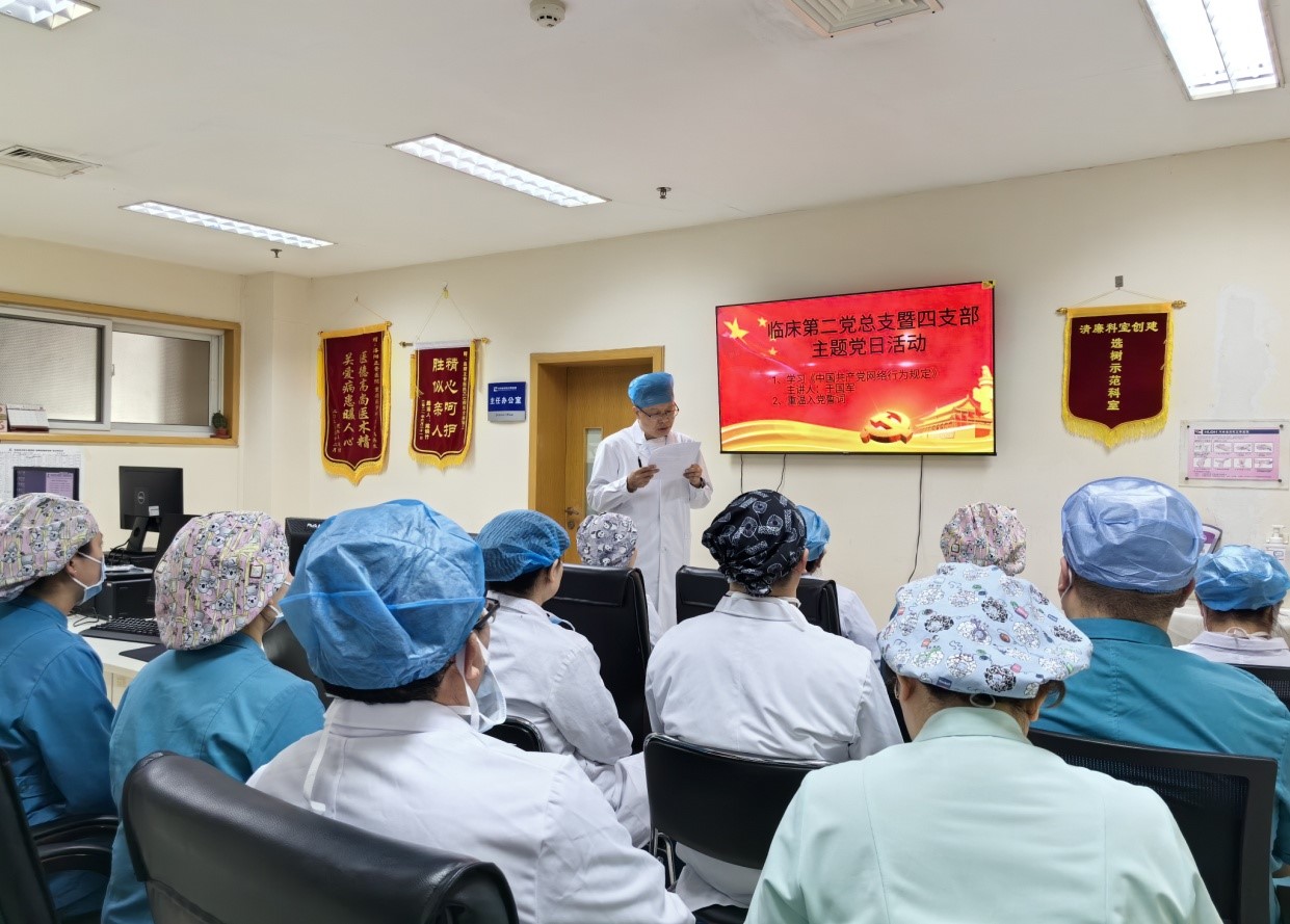 为发挥党员在网络空间作用,营造风清气正的网络环境,临床二总支四支部于4月15日召开了“规范党员网络行为,发挥党员先锋模范作用”主题党日活动。会议由支部组织委员于国军同志主持,支部全体党员参加了会议。