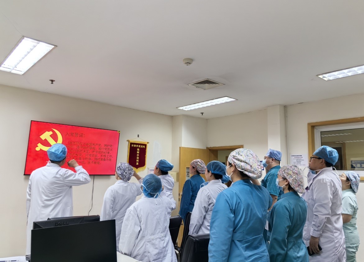 最后由组织委员于国军同志领誓,全体党员重温入党誓词。