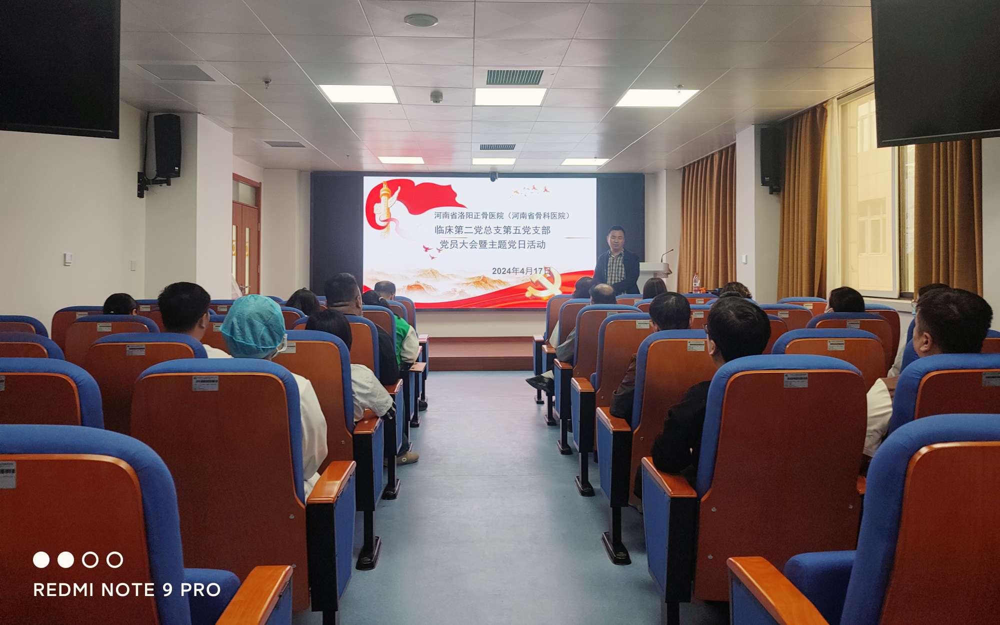 4月17日下午,临床第二党总支第五党支部在影像中心二楼报告厅召开党员大会暨“关注输液安全 守护人民健康”主题党日活动,会议由支部书记何广宏主持。